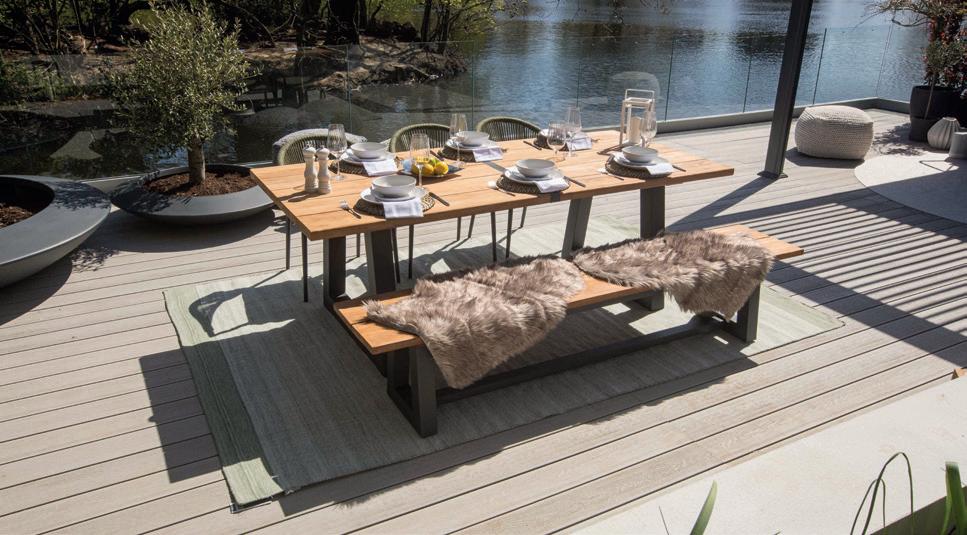 T extiles, such as outdoor rugs and cushions, will bring that added comfort. The designs we offer are made from 100% recycled PET plastic, which is a great way of changing the look of your outdoor space from season to season. Play with bright, tropical tones in summer and ochre and umber in autumn, when you want to create a cosier space. A firepit or table with built-in fire feature will add atmosphere whilst providing warmth on even the coldest of evenings.