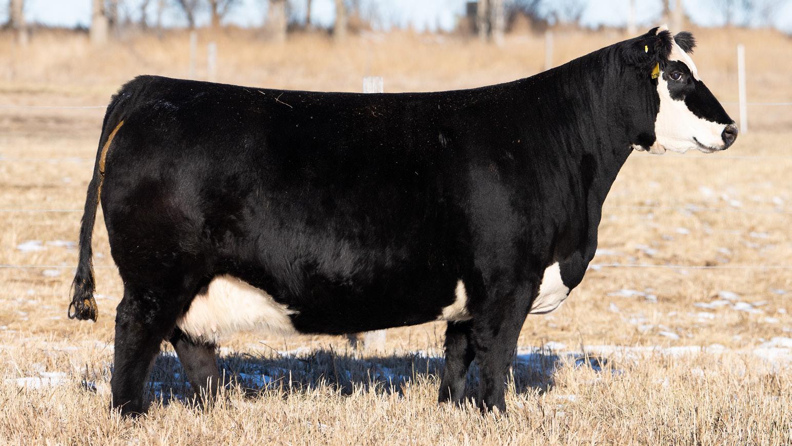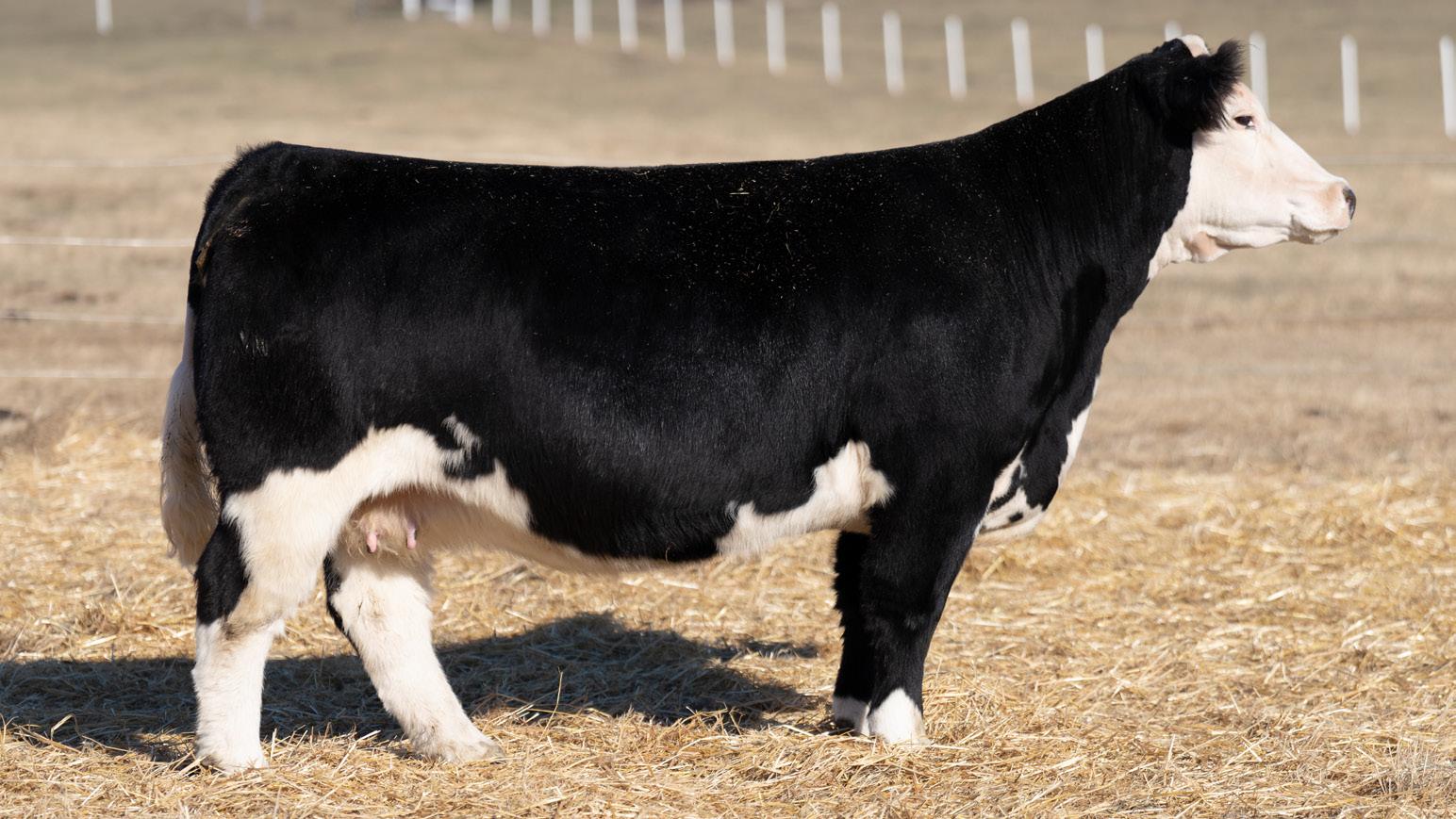 PROVEN DONOR COW! How many opportunities will you have this winter to purchase a proven donor cow to launch your program like this? 32Z is the mother to the extremely popular black and white 150 heifer from our fall sale that commanded the attention of elite breeders and feeders alike. She has sold 2 head that have averaged $18,750. A stout, big bodied female whose perfect hind leg emphasizes a striking silhouette. Keep on flushing her to the king of the ring and you might just have to purchase a money counter along with this cow!