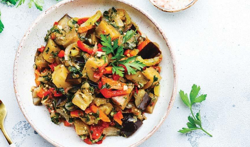 • Add roasted eggplant and zucchini to the pot. Stir to combine.