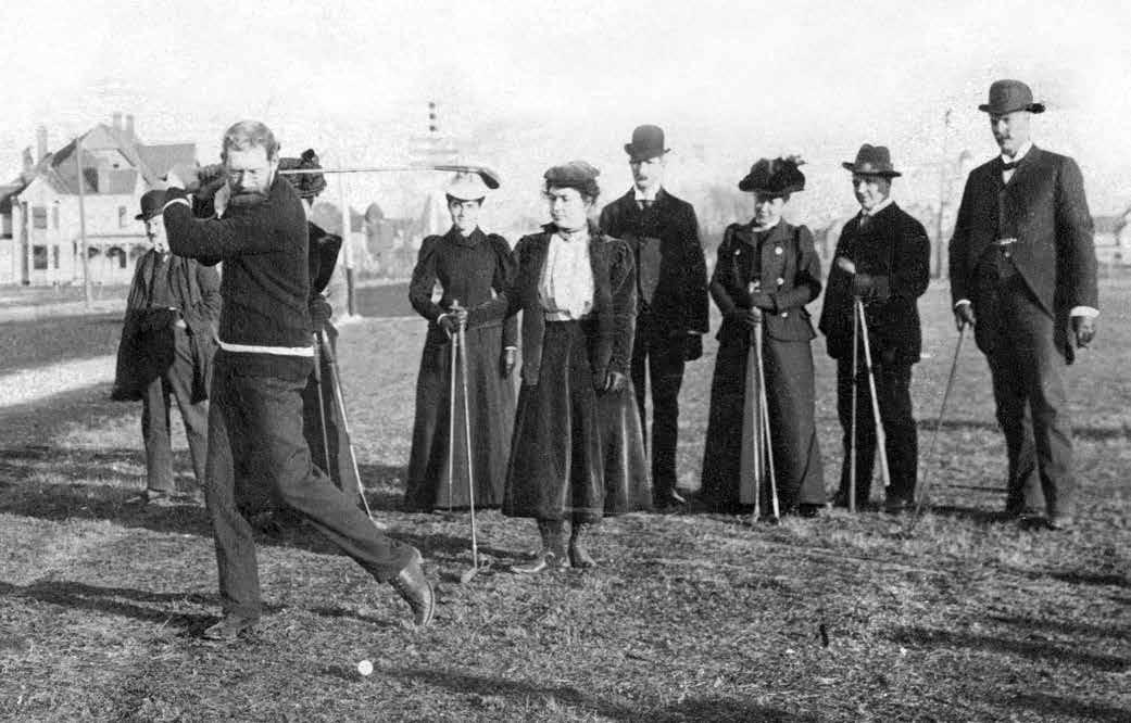 Omaha architect Harry Lawrie hits the first drive on the first course laid out inside Omaha city limits — Kountze Place Golf Club — in November 1899. Harry Lawrie scrapbook/Elizabeth Encell