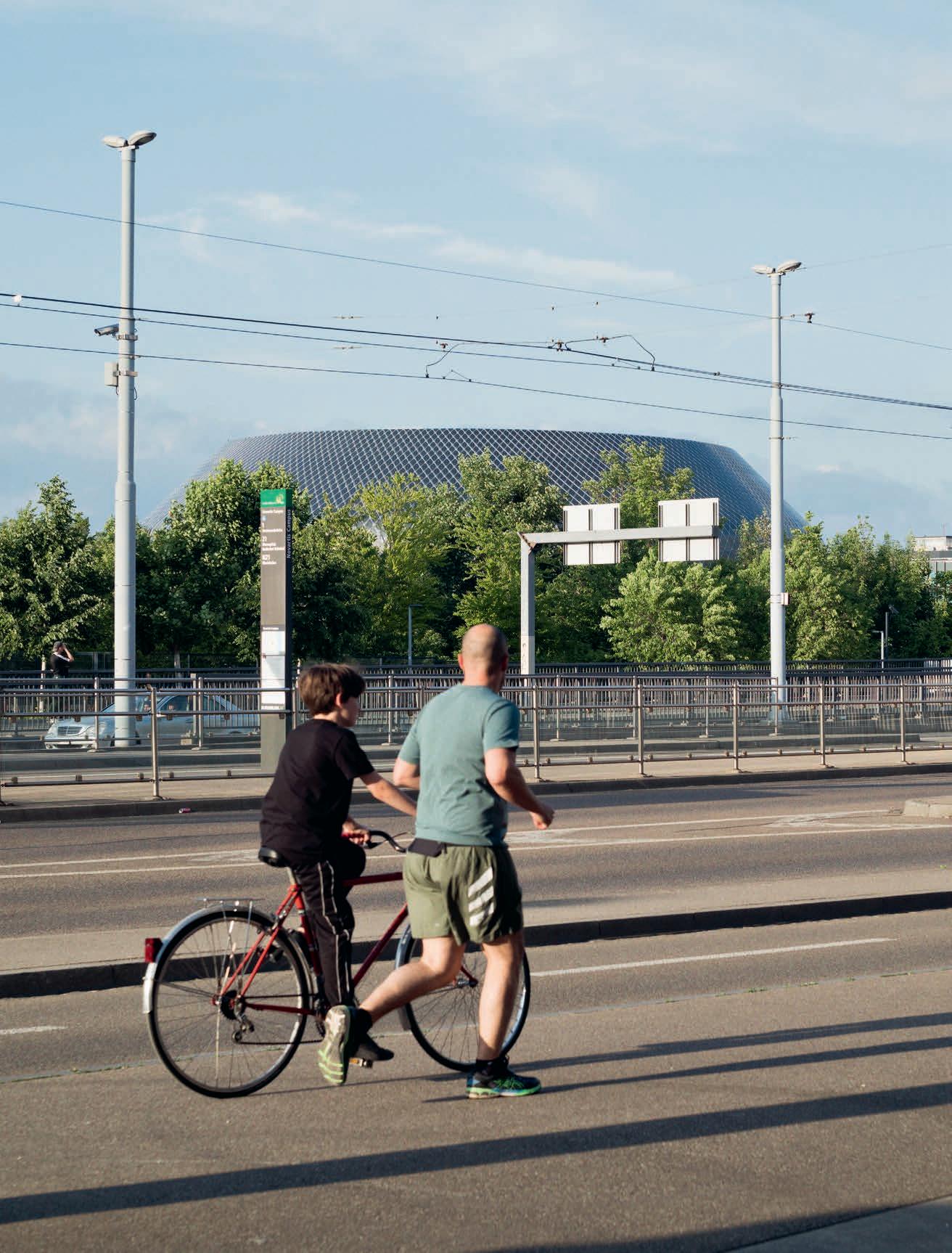 ÖstlichdesHaupteingangs,oberhalbdes2016fertiggestelltenFuss-undRadwegsvonBaselüberHuninguenach WeilamRhein,stehtvordenTorendesCampuseinsonderbarerNeulingimGebäudeparkderNovartis.SeinestädtebaulichpublikumsnaheLagenebenderDreirosenbrückeistProgramm:Diekomplexe,oftnichtsichtbareArbeitder Pharmaindustriewirdhierzusammenmitder250-jährigenFirmengeschichtederBevölkerungvermittelt.Seitseiner EröffnungEndeApril2022beherbergtderPavillonimoberenGeschosseinedererstenumfassendenAusstellungen zurPharmaindustrie,miteinemCafé,eineminteraktivenLernangebotfürSchulklassenundeinemVeranstaltungsraumimErdgeschoss.DieoffeneGrundrissbildunginnerhalbderKreisformerlaubteinenWechselderNutzungen, dasGebäudekannundwirdsichentwickeln,istNicholasBewick,projektleitenderArchitektbeiAMDLCircle& MicheleDeLucchiüberzeugt.DiePandemieunddiedamitebensoexponentiellwiedasVirussichverbreitende digitaleKommunikationhabengezeigt:EinpersönlichesTreffen,derrealeAustausch,sindenormbereichernd, wennsieplötzlichSeltenheitswerthaben.SoistderPavillonauchalsneuerBegegnungsortfürBaselzuverstehen.