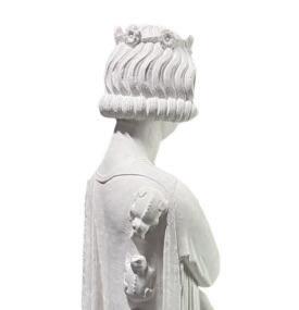 Das unverhohlen moralisierende Thema der klugen und törichten Jungfrauen wurde in der Gotik an verschiedenen Kathedralportalen in Frankreich und Deutschland dargestellt. Eine Figur, die unserer törichten Jungfrau ähnelt, findet sich zum Beispiel am Strassburger Münster. An der Galluspforte werden wir der Geschichte noch einmal begegnen. Hier am Hauptportal werden uns der Fürst der Welt und die törichte Jungfrau als negatives Gegenstück zum ideal-