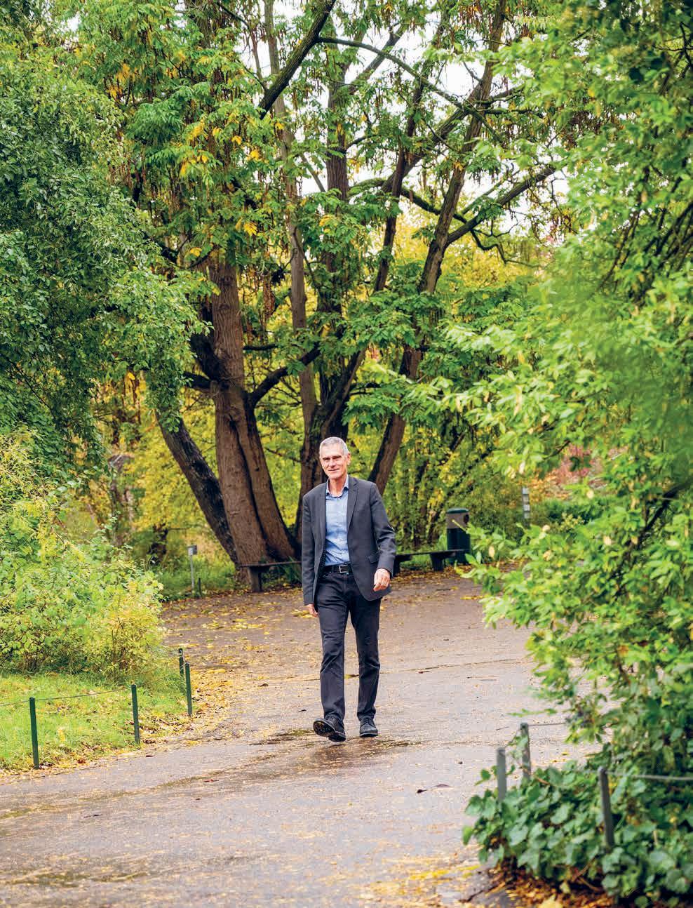 Der Zoo Basel ist auch für viele Menschen ein Zufluchtsort. Mit den über tausend Bäumen, die auf dem vergleichsweise kleinen Areal von elf Hektaren wachsen, ist er eine veritable Waldoase. Eine, in der man sich sogar verirren kann, denn der Zolli fühlt sich grösser an, als er tatsächlich ist. Das ist keiner Fata Morgana geschuldet, sondern dem Landschaftsgestalter Kurt Brägger. Er war von 1954 bis 1988 im Zoo tätig und entwickelte das Konzept, das dem Garten sein heutiges Aussehen gibt. Wie in einem englischen Garten verlaufen die Besucherwege stets leicht gekrümmt, was den Effekt hat, dass sich keine weiten Blickachsen auftun. Stattdessen fällt der Blick immer wieder auf Bäume, Büsche und Sträucher. Der Zoo erscheint dadurch grösser, und die Augen können sich nach der Tierbeobachtung im Grünen entspannen.