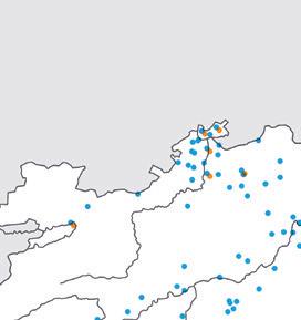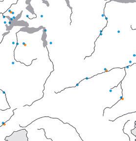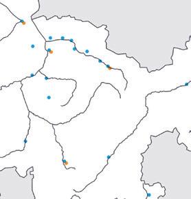 Wohn- bzw. Arbeitsorte der im Buch porträtierten Weber : innen Webateliers und -gruppen, die ein o enes Webangebot bieten, z. B. gemeinschaftliche Webprojekte, Kurse, Webstühle zum Mieten und anderes