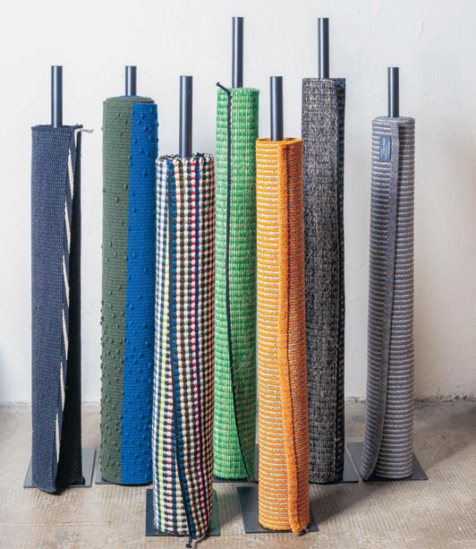 Am Teppich fasziniert sie seine Dichte. « Die Verdichtung ist das Grundthema beim Teppich. » Und die Farben. Die Farbigkeit vieler ihrer Teppiche springt ins Auge. Die unterschiedlichen Garne und Randabschlüsse, Struktur, Dichte und Gestaltung tragen zur auffallenden Vielfalt ihrer Kollektion bei. Isabel Bürgin webt mit zwei Schäften. Diese Beschränkung fordert sie zu höchster Kreativität heraus. « Mich inspirieren Situationen mit einem eng gesteckten Rahmen viel stärker, als wenn man alles machen kann.»