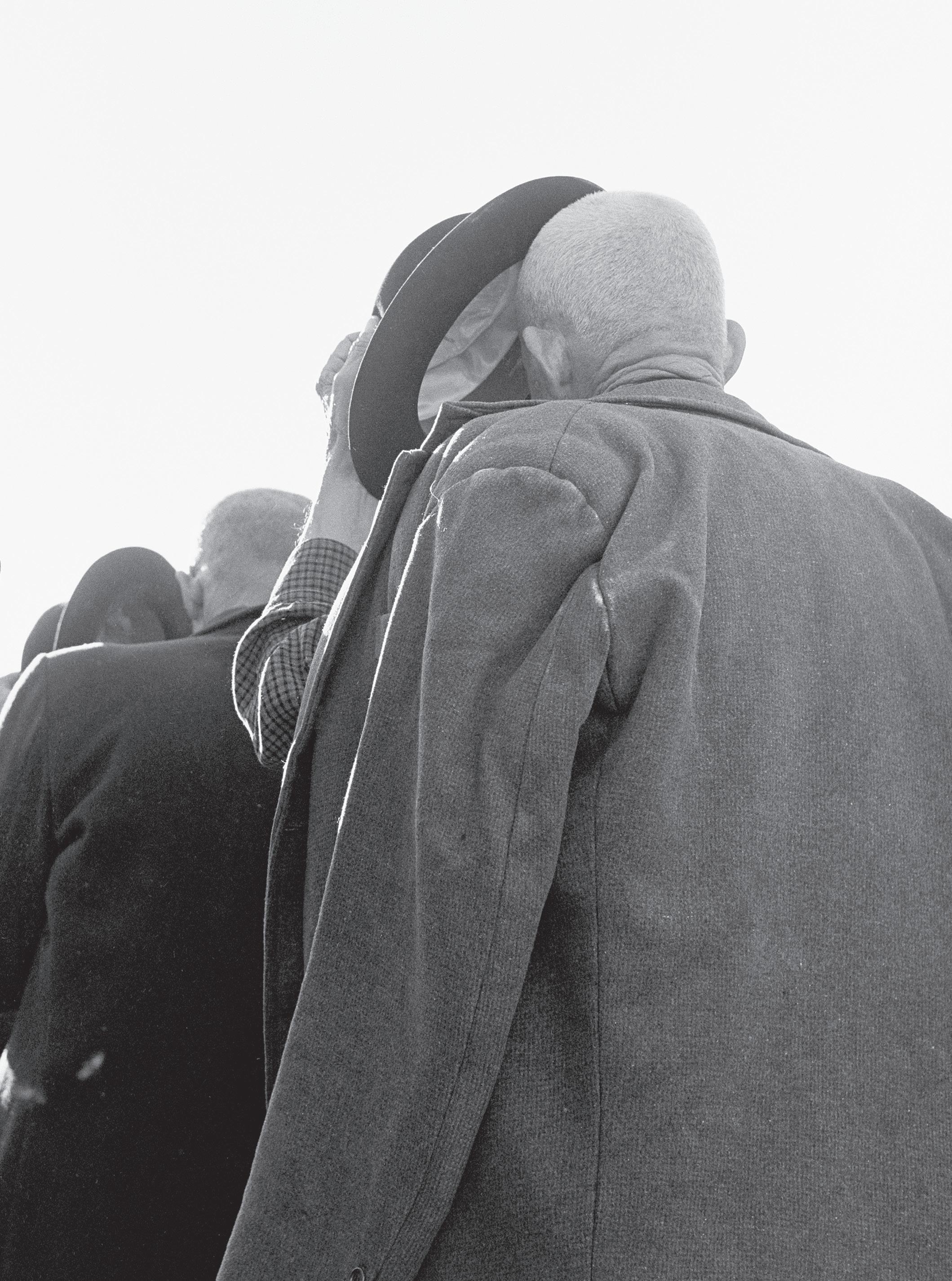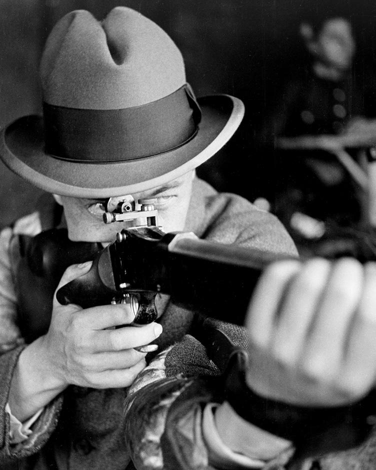 liess mir etwas Neues einfallen und arbeitete bis frühmorgens um 5 Uhr. Der restliche Teil der angeschmolzenen Platten gab individuelle grossformatige Bilder. Vom Schützenkönig mit dem krummen, abgelaufenen Gewehrlauf vergrösserte ich nur den Kopf und die Hand am Abzug. Der Preisträger der Pistolenschützen braucht doch keine Pistole, sein Kopf, mit dem zugekniffenen Auge im Moment des Schiessens, sagt ja alles! Ich fühlte keine Müdigkeit und freute mich an jedem so geborenen Bild und war mit der Express-Sendung um 6 Uhr früh im Zug nach Zofingen. Am Morgen läutete das Telefon. Es meldete sich der Chefredaktor Dr. Brack und sprach: ‹Ich gratuliere, solche Bilder müssen wir haben, das war ja grossartig, das war etwas Neues, etwas anderes.›»