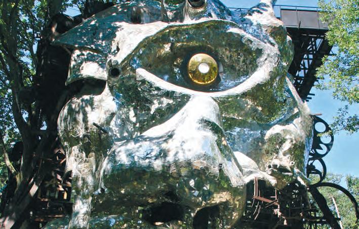 Das einäugige Monster mitten im Wald von Milly-la-Forêt ist eine Mischung aus Bauwerk und Skulptur. 1970 begonnen, zieht sich das Gemeinschaftsprojekt über Jahrzehnte hin; erst nach Tinguelys Tod wird es fertiggestellt und als Museum zugänglich.