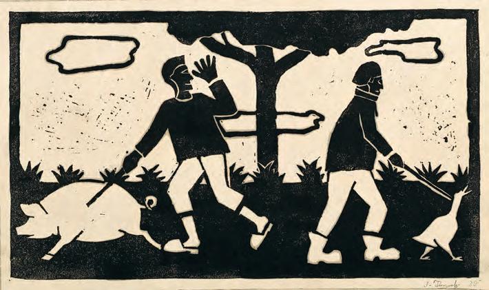 Jean Tinguely, ‹Hans im Glück›, Linolschnitt, 1939, 30.5 × 18 cm, Museum Tinguely, Basel.
