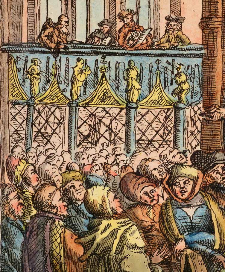 Der Krawalltag steht im Kontrast zu den sonst vor allem geistigen Tätigkeiten der mit der Reformation sympathisierenden Menschen an der Universität, in der Politik und in der Kirche. Basel war in der Reformationszeit «Teil einer intellektuell pulsierenden Region am Oberrhein» und «Knotenpunkt humanistischer Netzwerke».1 Dazu gehörten Buchdrucker wie Johannes Froben, Gelehrte wie Erasmus von Rotterdam und Pfarrer wie Wolfgang Capito und Johannes Oekolampad (1482–1531). Und mittendrin fand sich nach ihrer Heirat 1528 mit Oekolampad auch Wibrandis Rosenblatt (1504–1564) wieder. Sie übernahm die Führung des Pfarrhaushaltes von der kurz vor der Hochzeit verstorbenen Mutter von Oekolampad.
