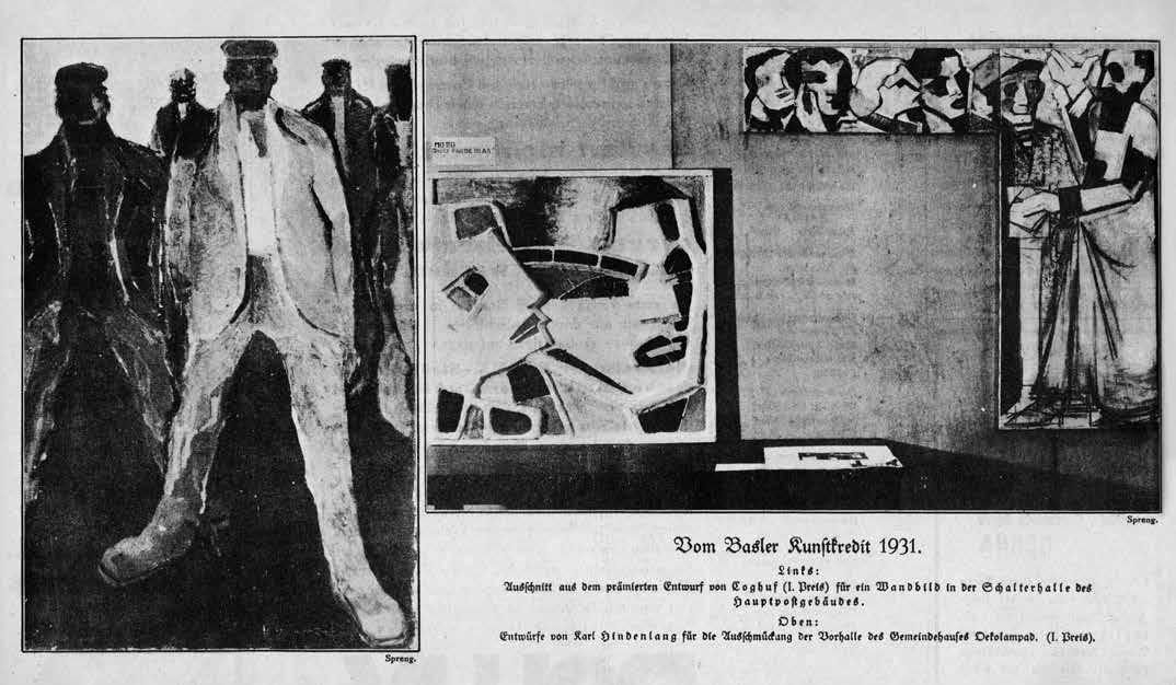 Gerade so aber, als Ablehnung der modernen Kunst und ihrer Vertreterinnen und Vertreter, wurde der Entscheid in Kunstkreisen aufgenommen. Der direkt betroffene Künstler Charles Hindenlang sass seit 1932 in der Kunstkredit-Kommission und war vom Entscheid offenbar so gekränkt, dass er einen Richtungsstreit vom Zaun brach. Der Präsident der Kunstkredit-Kommission und SP-Regierungsrat Fritz Hauser versuchte vergeblich zu moderieren. Die Fronten zwischen ‹alten› und ‹jungen› Künstlerinnen und Künstlern waren so verhärtet, dass es innerhalb der Basler Sektion der ‹Gesellschaft Schweizer Maler, Bildhauer und Architekten› (GSMBA) zu einer Spaltung kam. Die Affäre um Hindenlangs Wandschmuck war nicht Ursache der Spaltung, sondern der Tropfen, der das Fass zum Überlaufen brachte. Es kam zu einer «Polarisierung zwischen Arrivierten und Aufstrebenden».6 Die Gründung der neuen avantgardistischen ‹Gruppe 33›, bestehend aus etwa einem Dutzend Künstlerinnen und Künstlern, darunter Charles Hindenlang, ereignete sich am 10. Mai 1933. Am gleichen Tag verbrannten Anhängerinnen und Anhänger des nationalsozialistischen Regimes in Berlin und anderen Städten Bücher von unerwünschten Autorinnen und Autoren.