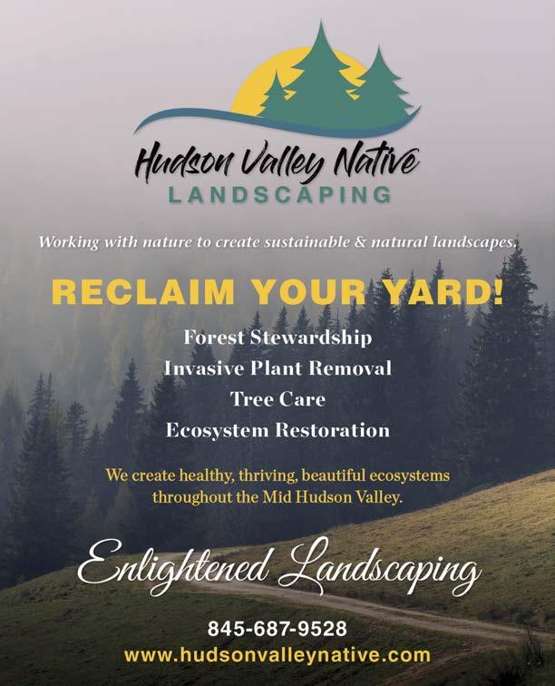Angie’s Bake Shop & Cafe 19 Apizza! 18 Aqua Jet 30 Athens Fine Art Services 52 Augustine Landscaping & Nursery 29 Barn Star Productions 9 Beacon Natural Market 16 Belleayre Mountain 56 Berkshire Food Co-op 17 Bistro To Go 16 Blue Deer Center 34 The Blue Spruce Inn and Suites 47 Brown Harris Stevens ....................... 22 Cabinet Designers, Inc ..................... 26 Canna Provisions.............................. 35 Carole Aoki Studio ............................ 70 Carrie Haddad Gallery ...................... 52 Casita ................................................ 21 Catskill Farms ....................... 10, 26, 30 Charlotte’s 21 Clarion Concerts in Columbia County 46 Clark Art Institute 63 Clermont State Historic Site 46 Colony Woodstock 8 Columbia Memorial Health 4 Custom Window Treatments 30 Dia Beacon 74 Fisher Center at Bard College 7 Garrison Art Center 74 Glenn’s Wood Sheds 10 Green Cottage 77 H Houst & Son 30 Herrington’s 25 Historic Huguenot Street 70 Holistic Natural Medicine: Integrative Healing Arts 34 Hot Water Solutions, Inc. back cover Hotchkiss School 34 Housatonic Heritage 70 Hudson Brewing Company 48 Hudson Business Coalition 47 Hudson Clothier ................................ 52 Hudson Roastery .............................. 48 Hudson Valley Garlic Festival ............ 8 Hudson Valley Hospice .................... 35 Hudson Valley Native Landscaping . 29 Hudson Valley Trailworks ................. 29 Inn at Lake Joseph ............................. 4 Isaan Thai Star .................................. 43 J&G Law, LLP 77 Jane St. Art Center 70 Kinderhook Group, The 44 Kingston Wine Co. 19 Maeve’s Place 20 Malcarne Contracting 1 Mark Gruber Gallery 68 Menla 35 Mesa Solutions 70 Mettabee Farm & Arts 47 Mid Valley Wine & Liquor 13 Mikel Hunter 43 Milford Hospitality Group 63 Minard’s Family Farm 10 Misto 20 Monkfish Publishing ......................... 77 Mother Earth’s Storehouse .............. 17 Mountain Laurel Waldorf School ..... 56 N & S Supply ..................................... 29 Niche ................................................... 9 Olana ................................................. 48 Ozland Festival ................................ 56 Peekamoose Restaurant & Tap Room 19 Putnam County Tourism 2 Red Cedar Landscapes 30 Roe Jan Brewing 46 Sadhana Yoga Center 52 Samuel Dorsky Museum of Art 68 Sawyer Savings 4 September Gallery 47 Shadowland Stages 70 Sullivan Catskills inside back cover Sunflower Natural Food Market 15 Susan Eley Fine Art 48 SYNC Psychological Services, PLLC 34 Tabla 20 Tao of Thoreau 78 Ted Dixon Creative 74 Third Eye Associates Ltd. 77 Unison Arts Center 70 Upstate Films 78 Upstate Studio 56 Vanikiotis Group 17 Vassar College .................................. 68 WAAM - Woodstock Artists Association & Museum ................ 63 Wallkill View Farm Market ................ 16 WDST 100.1 Radio Woodstock ....... 76 West Strand Art Gallery .................... 68 Williams Lumber & Home Center .... inside front cover Woodstock Film Festival 2 Woodstock Invitational Luthiers Showcase 56