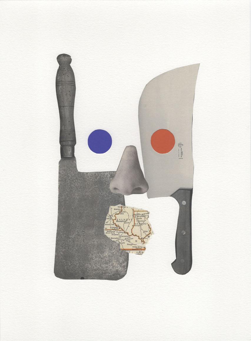 About Selfie II Esber says, “I try to trust muscle memory to produce interesting results. The drawing that preceded this painting was started by making dots on the paper and then connecting them. I liked the randomness of that, but also the idea of a faceless face. As I added to the drawing and built the edges of a head around the dots, I decided to use my own head as a template and make a kind of self-effacing self-portrait.”