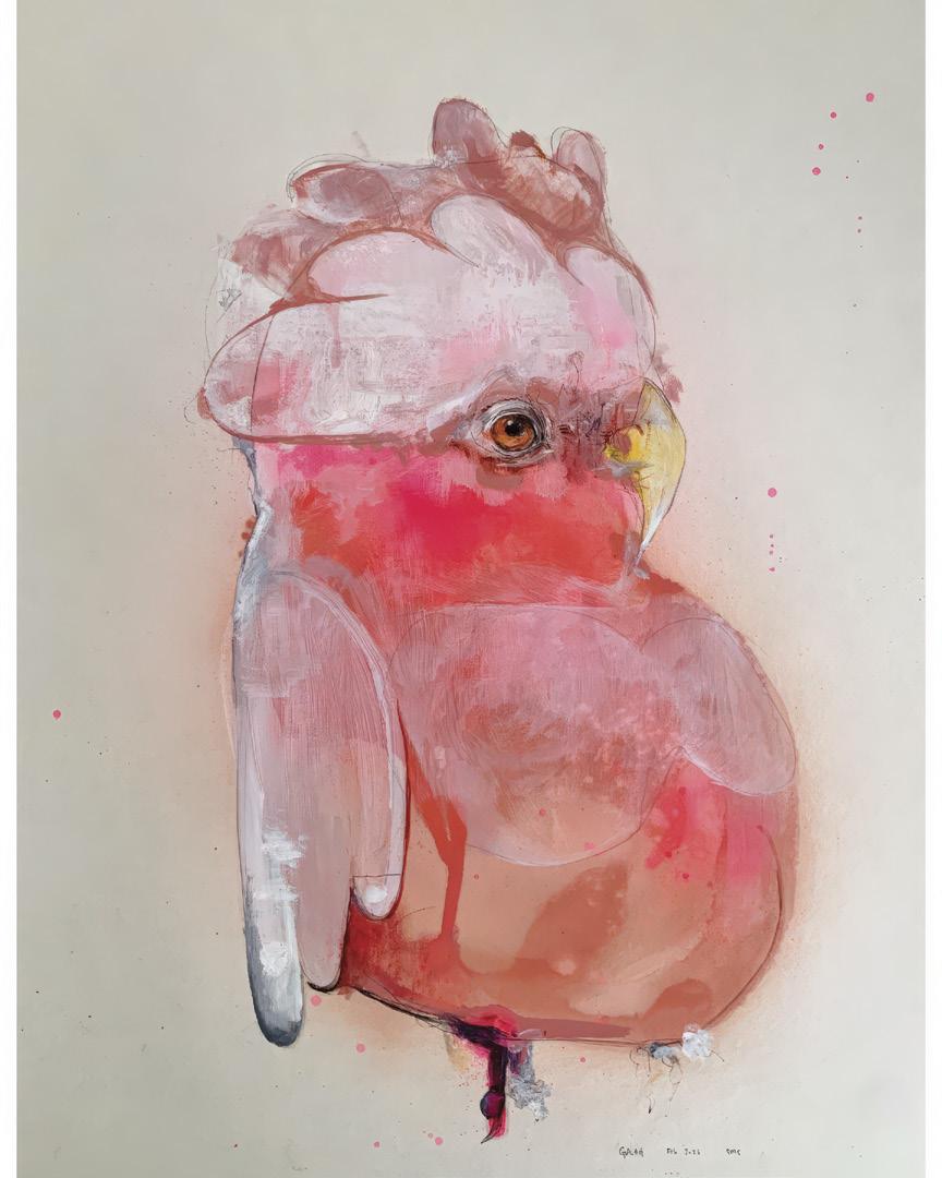 with the composition and then move on to doing small studies in greyscale and then color to make the most impact in terms of shape and contrast. Sometimes something special happens, and I get the full picture beamed into my head. Then it’s getting pen and paper as fast as you can to jot it down before you forget. It’s like a ghost showed you their cheat sheet, but you’re copying it from a dirty slide projector. Once I’ve settled on something, I’ll paint it on a toned canvas in grisaille, and then finish with layers of color. It’s a very old-school method of working, but really so much of it is improvisation that I never get bored. More or less all of my work is done out of my head from imagination, pulling reference occasionally here and there when I can’t quite remember what something looks like. It’s quite the challenge!” he says.