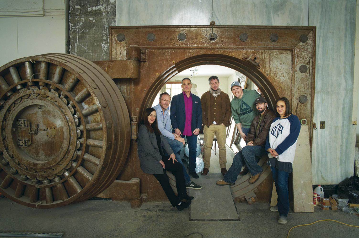 The staff of Savage Wonder, a veteran-focused arts organization, which recently moved to the former Mechanic Bank building on Main Street in Beacon. Founder Chris Meyer is pictured, center.