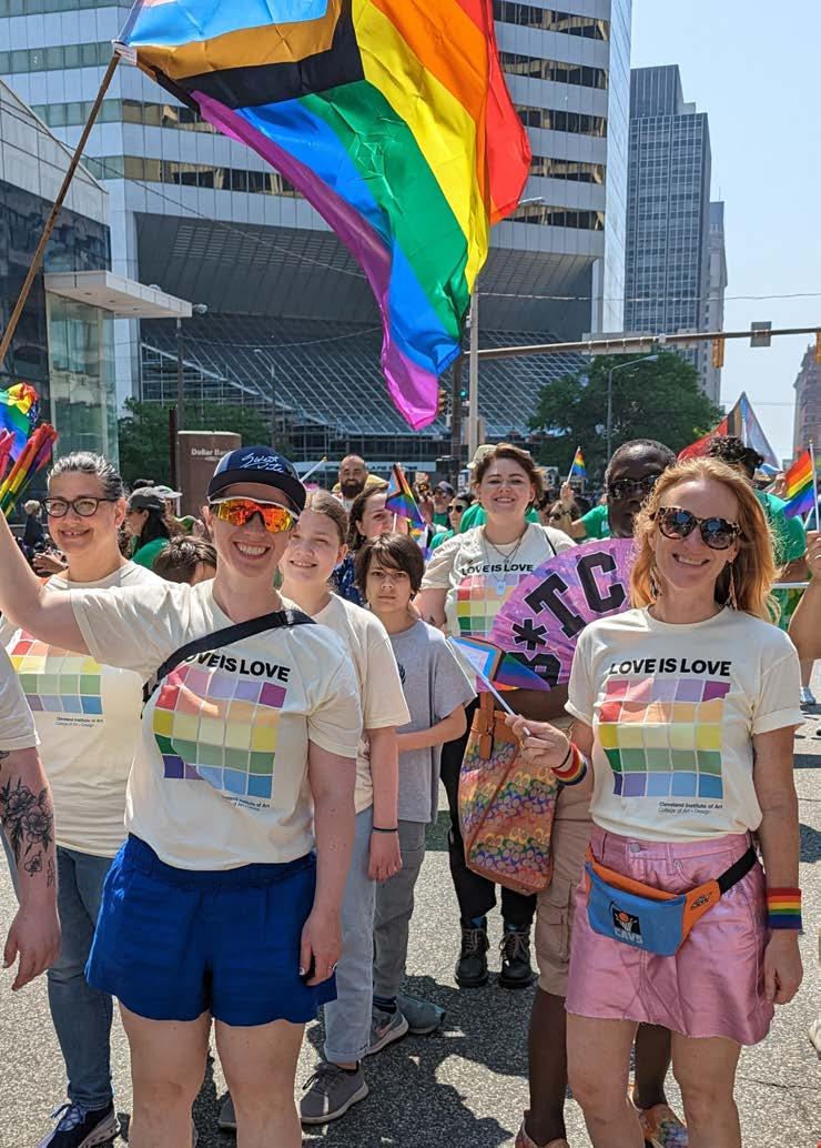 CIA students, faculty and staff, including President + CEO Kathryn J. Heidemann (right), marched in the Pride in the CLE 2023 parade in downtown Cleveland.