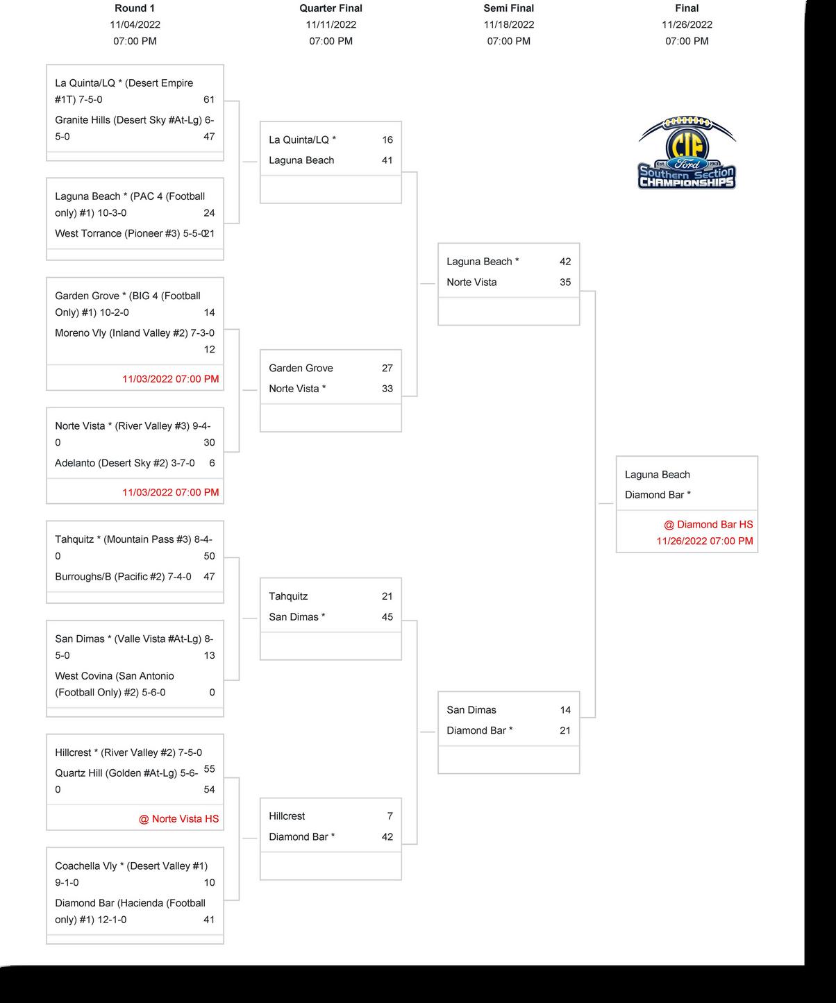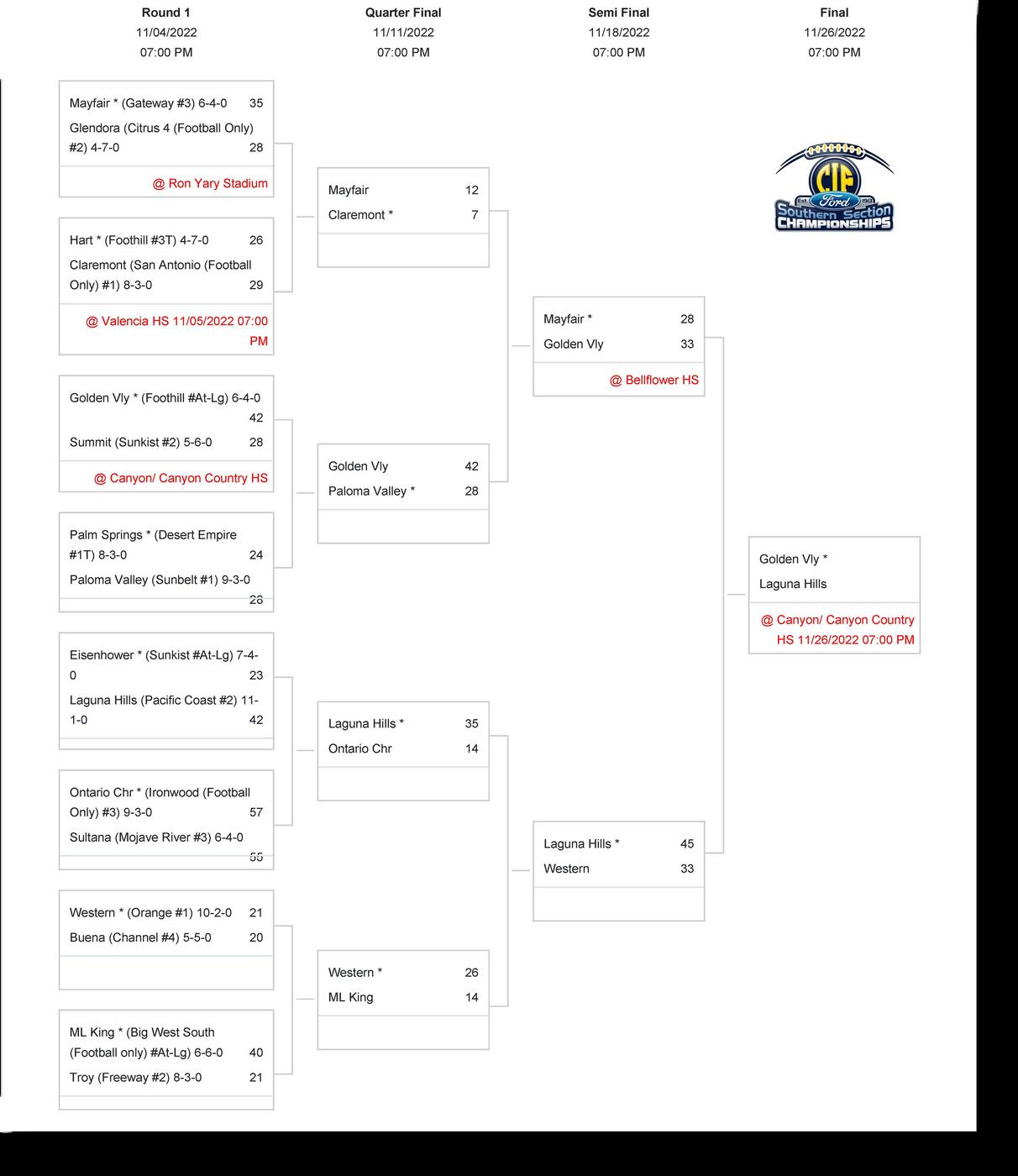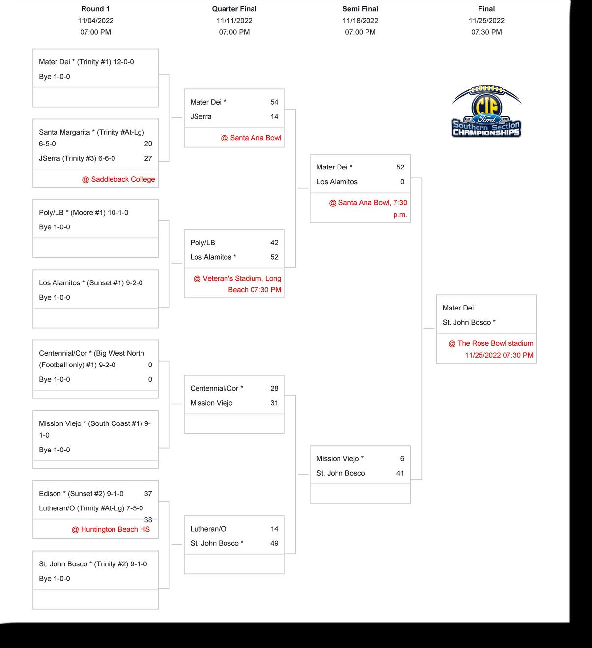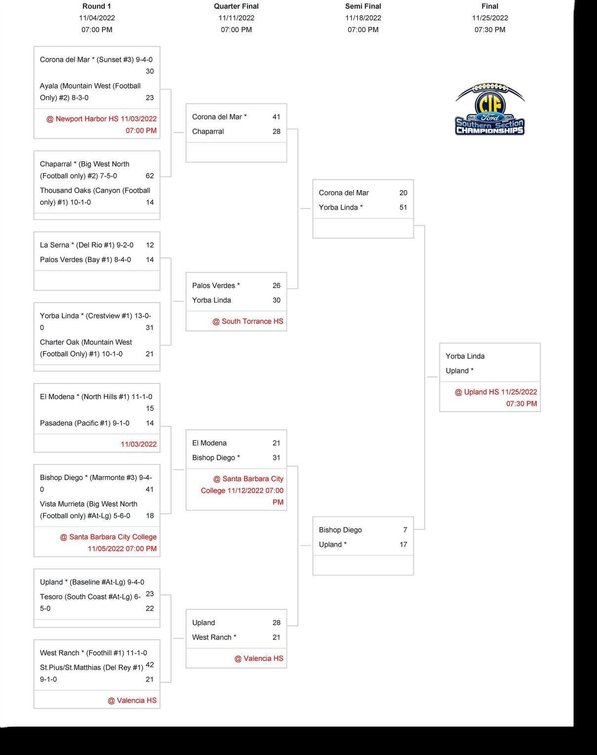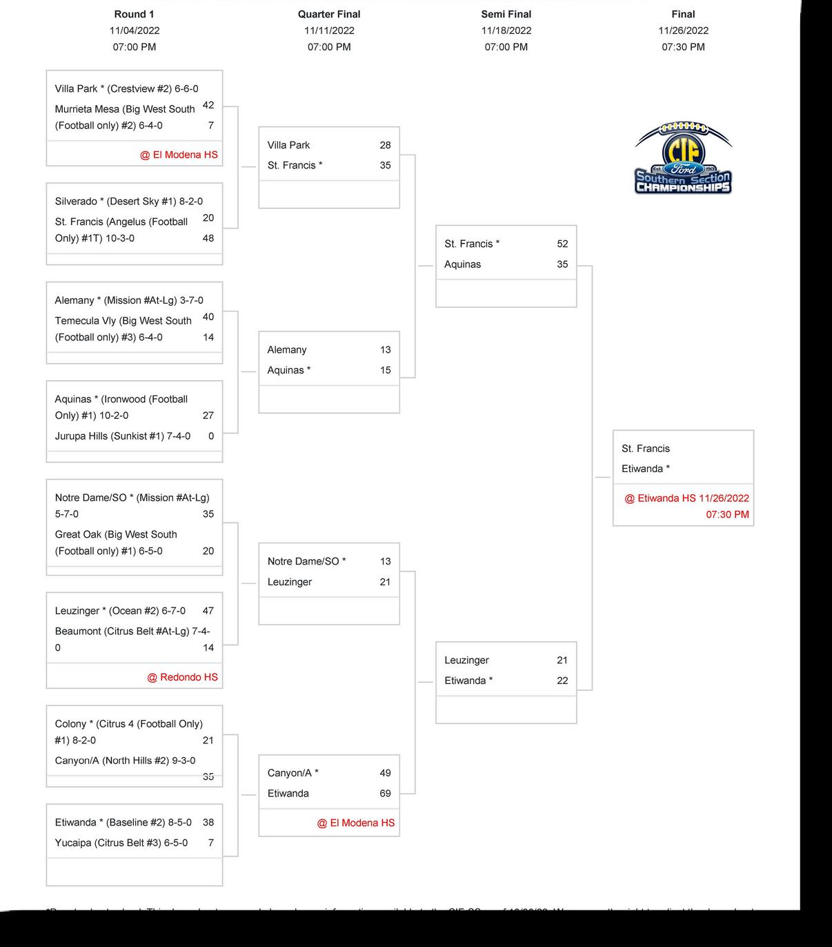 The CIF Southern Section is proud to host these Section wide playoffs based on the highest level of education based athletics. We hope that our events are met with respect, integrity and dignity for every student athlete, coach, fan base and especially our game officials. This will help produce the highest level of interscholastic athletic experience for all involved.