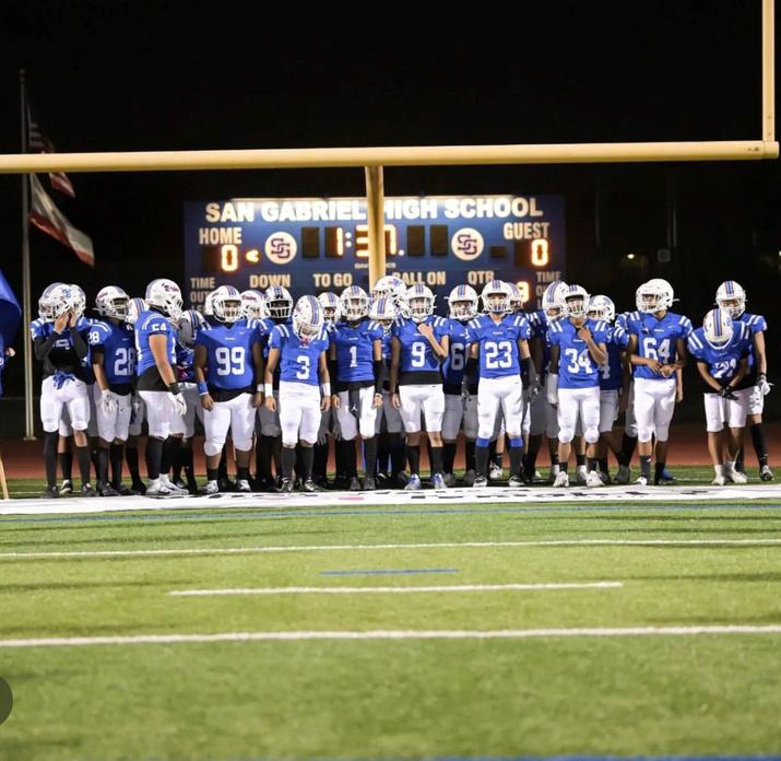 Principal: AthleticDirector: HeadCoach: AssistantCoaches: League: Debbie Stone Kirsten Nielsen Kevin Encinas Rogelio Palomino Shane Purkiss Marcus Galan Almont SAN GABRIEL SAN GABRIEL MATADORS MATADORS DIVISION 13 Ht. 5'8 5'8 5'6 5'9 5'9 5'11 5'5 5'9 5'9 5'8 6 5'7 5'7 6'1 5'11 5'11 5'9 5'9 Wt. 130 150 160 160 135 165 130 152 160 140 135 145 170 185 170 170 140 140 Pos. QB/DB RB/S RB/DB FB RB/C LB RB LB WR/DB WR/DB R/DB WR/DB TE/LB TE/DE R/CB RB RB/LB LB No. 1 2 3 4 5 6 7 8 9 10 12 13 15 18 19 19 20 21 Name Jacob Muniz Preston Ortega Robert Lucero Louie Navarro Tijani Daley Daniel Lopez Adam Mascarro Xavier Salido Ivan Can Troy Le Nathan Daum Smith Giovanni Molina Joshua Uribe Daniel Martinez Efren Torres Efren Torres Julian Palma Troy Carlton Yr. 12 12 12 9 12 11 9 11 12 12 12 11 12 11 10 10 10 11 Ht. 5'6 5'10 5'7 5'7 5'5 5'10 6 5'10 6'2 6 6 5'11 5'8 5'7 5'8 5'11 5'10 5'8 Wt. 120 150 140 140 150 240 145 230 220 240 230 160 230 200 200 250 260 230 Pos. R/DB R/DB LB RB/DT LB FB R/DB G/DT T/DT C/DT OL/DL C G C DT T DT DT No. 24 28 32 34 42 44 45 52 54 55 60 63 66 69 70 73 98 99 Name David Hernandez Vicente Morales Nathan Gutierrez Alex Acevedo Cody Lopez Elijah Muniz Randy Lopez Raul Garibay Matthew Garcia Bolanos Joshua Esquivel Gabriel Can Joe Torres Anselmo Ayon Aaron Hampton Andrik Vasquez Cruz Santiago Reyes Jonathan Lopez, Jr Desmond Smith Yr. 10 11 11 11 11 12 11 12 12 12 11 10 12 12 11 11 10 12