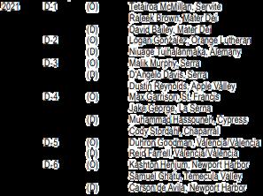 Ht. 5 9 5 8 5 9 6 0 5 9 6 0 6 0 5 11 6 2 6 2 6 2 5 10 5 10 6 0 6 2 5 8 5 10 5 7 5 8 5 7 5 10 6 0 5 9 5 10 5 8 5 7 5 11 5 1 5 1 Wt. 155 173 160 170 185 203 208 180 205 210 180 175 182 176 216 155 180 158 170 155 200 195 165 163 179 207 170 Pos. WR RB DB WR DB LB LB WR QB LB WR DB WR WR TE QB WR WR RB DB RB DB RB DB DB OL DB LAKEWOOD LAKEWOOD Principal: AthleticDirectors: HeadCoach: AssistantCoaches: League: DIVISION 8 LLANCERS ANCERS No. 1 2 3 4 5 6 7 8 9 10 11 12 13 14 15 16 19 19 20 21 22 23 25 26 29 31 32 34 35 Name Ethan Sharp Zion Smith Anthony Winston Jr. ShjionTaion DaCoud Jace Casillas Tyree McCowen Montrell mingo Ellis Gibson Brayden Downen Elijah Baltazar Malikai Johnson Sean Lane Elisha Mariner Takim Raye Brown, Jr Javier Jose Aguilar Kade Casillas Orion Lockhart David Voorhies Ingles Cayden Clark Tiwan Jonea Kaleb Foster Anthony Guy Justin Holt Xavier Nunez Nytrell Miller Dana Kawamura Ayeven Aupiu Dijon Higgins Brandon Hess Yr. 12 12 11 11 12 11 12 12 12 11 12 11 11 12 12 9 12 11 12 9 12 12 11 9 10 12 9 12 10 Ht. 5 9 5 11 5 10 6 2 5 10 6 1 5 10 6 0 5 10 6 1 6 2 5 11 5 9 5 11 5 9 5 10 5 10 5 11 6 0 6 5 5 11 6 4 5 9 5 8 5 6 5 7 5 9 5 11 6 0 6 1 Wt. 174 210 185 225 210 200 210 190 170 230 270 240 189 203 280 170 189 232 225 295 245 200 160 150 150 170 155 210 225 247 Pos. TE LB LB TE DL LB DL DL P/K TE DL DL DL LB OL P/K DL OL OL OL OL TE WR WR WR WR LB DL OL DL No. 36 41 42 44 45 51 52 53 54 55 59 60 61 62 64 66 66 70 74 75 77 80 81 83 88 88 89 94 96 99 Name Omari Linton Aiden Guizar Rylee Flores Noah Mallon Rovana Tufugafale Nathan Alvarez Jordan De La torre Kenai Foster Andrew Heang Jay Tauala Harris Derek Robertson Jacob Tuinei Faatuiolemotu Purcell Juan Ortiz Hezekiah Pryor Lynch Anthony Heang Kaelib Verduzco Luis Marrero Abraham Sanchez Michael Salinas Isaac Pascual Caleb Tafua Jaylen Stokes Jacob Garcia Dane Mason Quan Morgan kobe aiono Marshawn Drummond Jayshaun Tauala Harris RahKeen Moore Yr. 9 12 12 12 10 12 11 12 10 11 12 11 10 10 10 10 9 12 12 11 11 9 9 9 9 9 9 9 10 12 MonaMerlo MichelleKaeka MikeWadley JustinUtupo LeilaniUtupo FernandoViramontes JoseArroyo RaulLopez MalikZaire KeithFranklin ChrisMarcopoulos SamHarris MalikGilmore CameronGallegly MikeTrujillo RonnieCannon DanielCasillas JasonDavila Bernardez JohnHenderson JordanSanders VincentHernandez Moore