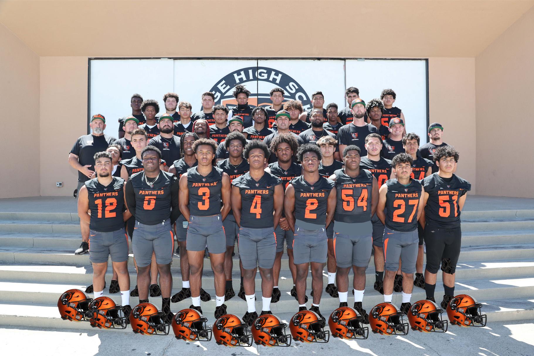 ORANGE ORANGE DIVISION 6 PANTHERS PANTHERS Principal: Athletic Director: Head Coach: Assistant Coaches: League: Sheryl Anderson Glass Alicia Seevers Robert Pedroza Lucas Mealy & Justin Vasquez Orange Coast Ht 6'1" 5'8" 6'0" 5'9" 5'11" 6'2" 5'9" 6'2" 5'10" 6'0" 5'9" 5'8" 5'11" 5'10" 5'7" 6'2" Wt 170 165 185 185 205 165 170 160 175 180 170 155 160 175 140 175 Pos QB RB DB DB RB DB DB QB DB WR LB DB WR LB DB WR No 1 2 3 4 5 6 7 9 10 11 13 15 15 21 22 23 Name Hype Grand Kobe Boykin Jaelen Lightfoot Jaden Moore Ardwon Morris Arron White Jakob Coleman oscar rios Wesley Lundell Centrell Wise Angelo Adetoye Isaac Daniels Timothy Jackson Xavier Valentine Diego Levi Carrillo Jonathan Smith Jr Yr 10 10 12 11 11 10 10 9 9 12 12 10 10 10 11 12 Ht. 5'10" 5'7" 5'7" 6'2" 6'1" 6'1" 5'8" 5'8" 5'10" 6'0" 6'2" 6'0" 6'2" 6'0" 5'11" 5'9" Wt. 180 150 150 215 210 250 170 186 225 205 240 240 265 255 240 280 Pos. DL DB LB DL DL DL DL P/K OL OL OL OL OL OL OL OL No. 25 27 30 43 44 50 51 54 54 55 66 66 72 74 75 76 Name Alexander Lazcano Cristobal Quirarte James Medina Adrian Ruiz James Vranesh Carlos Rivera Joshua Flores Isaac Guerra Khalil Lawrence Antwone Hebrard Anthony Ruiz Eddy Sanchez Jaxson Tanielu Jose Guerra Joseph Carrillo Troy Jennings Yr. 9 9 10 12 12 10 9 11 12 11 12 12 12 10 11 10