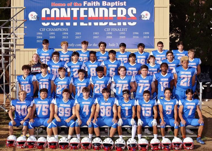 Principal: AthleticDirector: Co HeadCoach: Co HeadCoach: AssistantCoaches: League: Stephania Rasmussen John Rasmussen John Rasmussen Rob Davidson Jonathan Rasmussen Matt Rasmussen Jose Bernardo Dan Black Freelance FAITH BAPTIST FAITH BAPTISTCONTENDERS CONTENDERS 8-MAN DIVISION 1 Ht. 6'0" 5'8" 6'2" 6'2" 5'7" 5'10" 5'11" 5'7" 5'11" 6'1" 6'1" 5'7" 5'6" 5'9" 5'8" 6'2" 6'9" 6'0" 5'9" 5'11" Wt. 156 137 195 195 150 150 163 140 149 158 160 158 155 159 136 192 250 179 154 189 Pos. RB. DB RB, LB OL, DL RB, LB RB RB, DB RB RB, DB WR, DB WR, DB WR, DE RB, LB RB, LB QB, DB RB, DB RB, LB TE, DE TE, LB RB, DB OL, DL No. 1 2 3 4 5 6 7 8 9 10 12 13 14 17 18 19 21 23 25 26 Name AC Swadling Matthew Nguyen Cade Cashman Parker Mills Reece Avelino Abraham Otworth David Holland Lamaiah Flowers Francesco Caterina Max Alwag Josh Stupak Mikey Llerena John Jackson Christian Velasquez Cody Carmona Jackson Simon Tracy Bryden Carter Mills Nathan Castillo Johnny Sedrak Yr. 12 9 12 12 12 9 12 10 9 11 9 12 11 9 9 10 11 9 11 11 Ht. 5'10" 5'4" 5'8" 5'9" 5'9" 6'2" 5'7" 5'9" 5'11" 5'9" 5'10" 5'11" 5'10" 5'8" 5'11" 5'5" 6'1" 6'1" 6'1" Wt. 156 105 145 129 152 182 150 163 167 178 190 200 197 210 190 140 162 225 209 Pos. QB, DB DB RB, LB RB, DB DB, LB OL, DL DB RB, LB OL, DL OL, DL OL, DL OL, DL OL, DL OL, DL OL, DL RB, DB WR, DB OL, DL OL, DL No. 27 30 32 33 34 36 40 41 45 52 53 71/72 74 75 80 85 88 98 99 Name Christian Kim Sean Karpman Jeffrey Borchardt III Daniel Merino Jayce Devita Jackson Fernandez Richard Flippo Gavin Maghakian Angel Arrecis Anthony Parham Jeremy Hong Gavin Nakagawa Isiah Fernandez Akira Lee Michael Sison Ryan Gill Tryntyn Mardikian Dylan Grenier Kris Tatevossian Yr. 10 9 10 10 9 9 12 11 11 9 11 11 10 12 10 9 11 12 12
