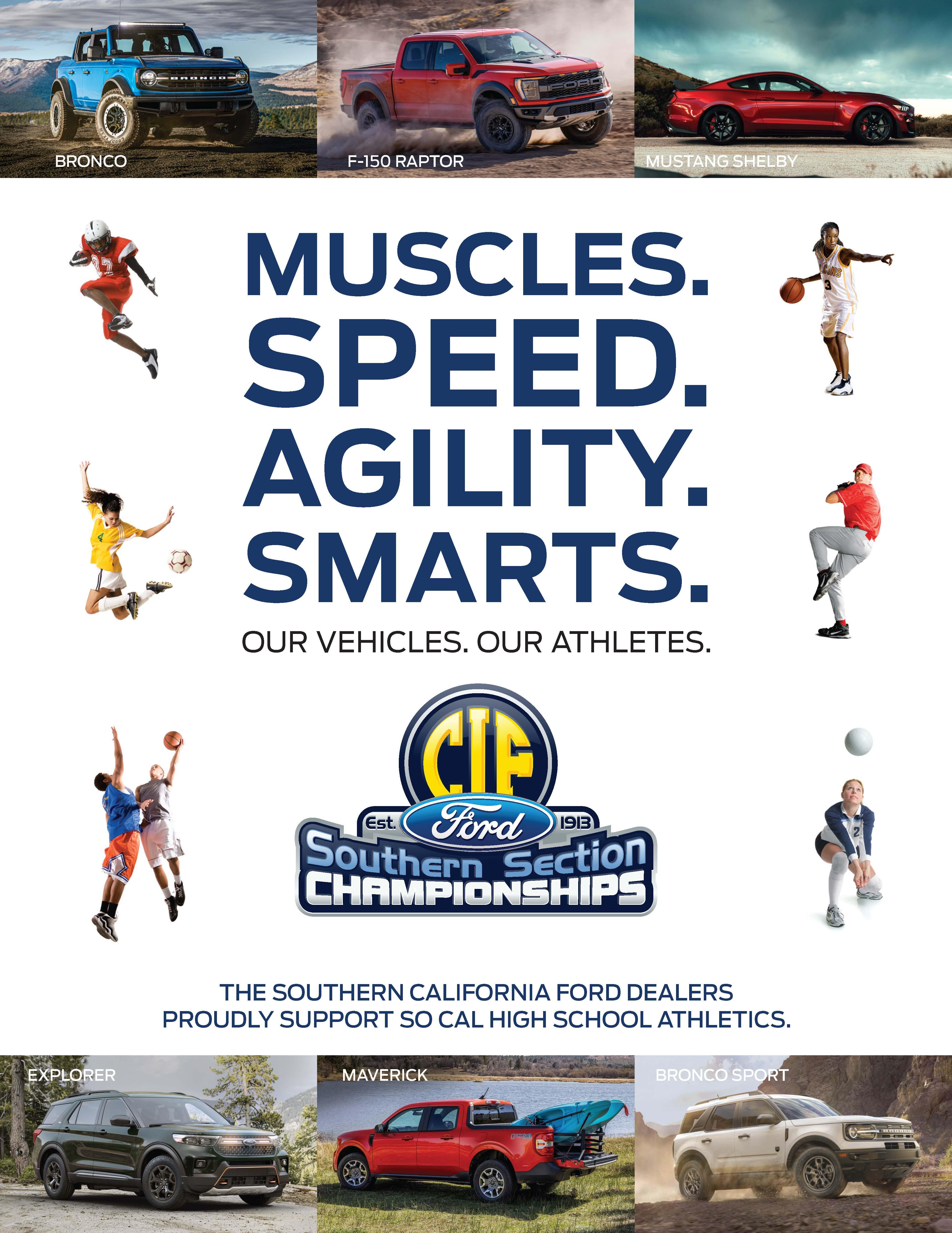 CONGRATULATIONS TO ALL THE STUDENT ATHLETES, COACHES, AND SCHOOL COMMUNITIES ON YOUR QUALIFICATION TO PARTICIPATE IN THIS YEAR’S CIF SOUTHERN SECTION FORD CHAMPIONSHIPS! THE QUALITY OF COMPETITION IN THE SOUTHERN SECTION IS UNMATCHED ANYWHERE IN THE STATE OR THE COUNTRY, FOR THAT MATTER SO MAKING IT INTO THE POST SEASON IS QUITE AN ACCOMPLISHMENT THAT EACH OF YOU SHOULD BE VERY PROUD OF.