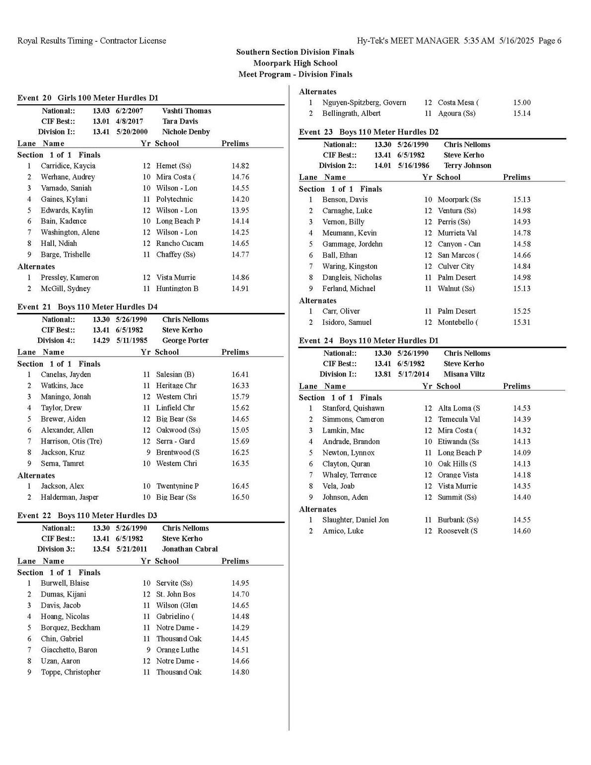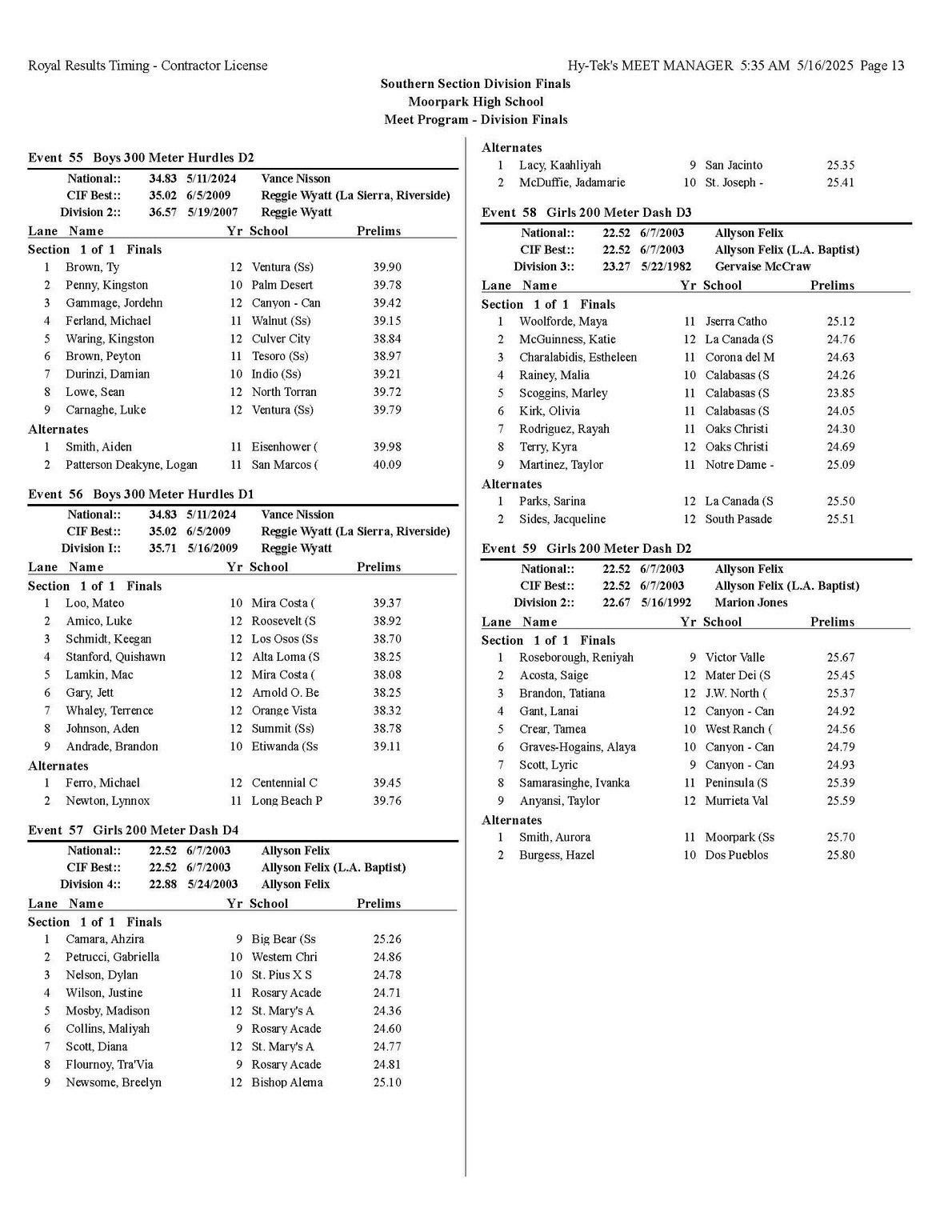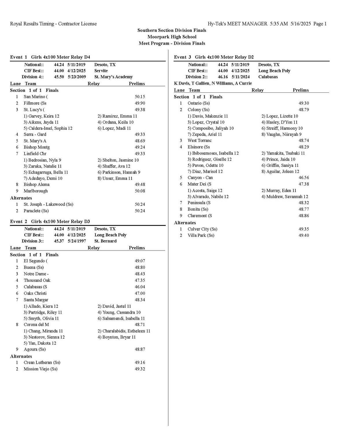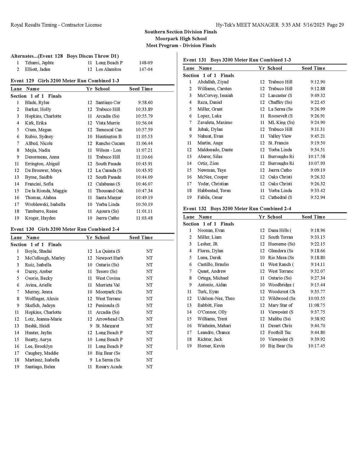 The quality of competition in the Southern Section is unmatched anywhere in the state or the country, for that matter so making it into the post season is quite an accomplishment that each of you should be very proud of.