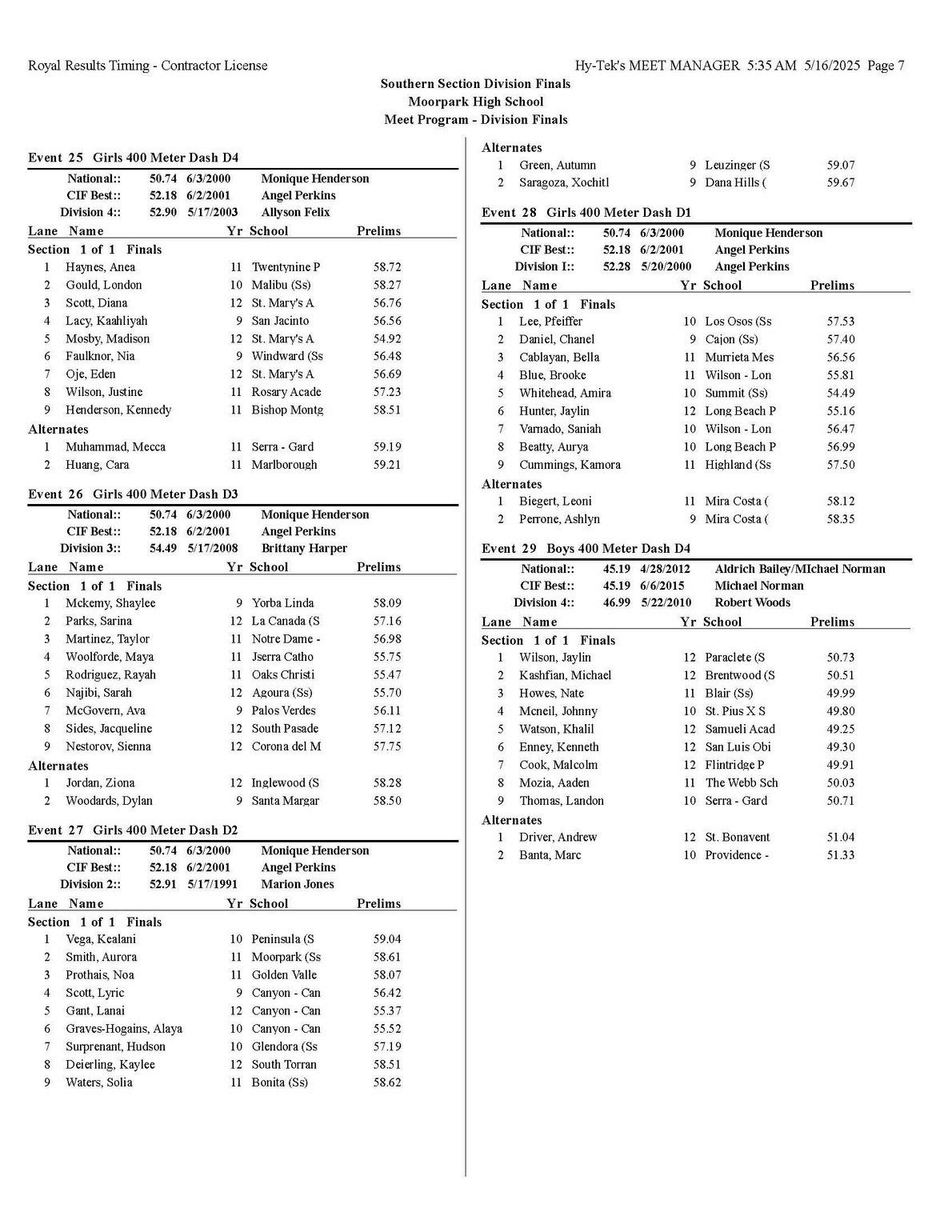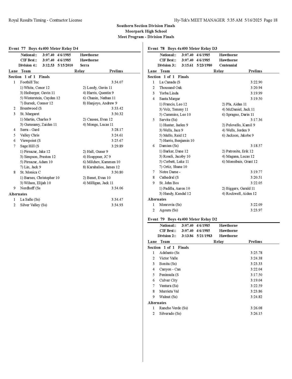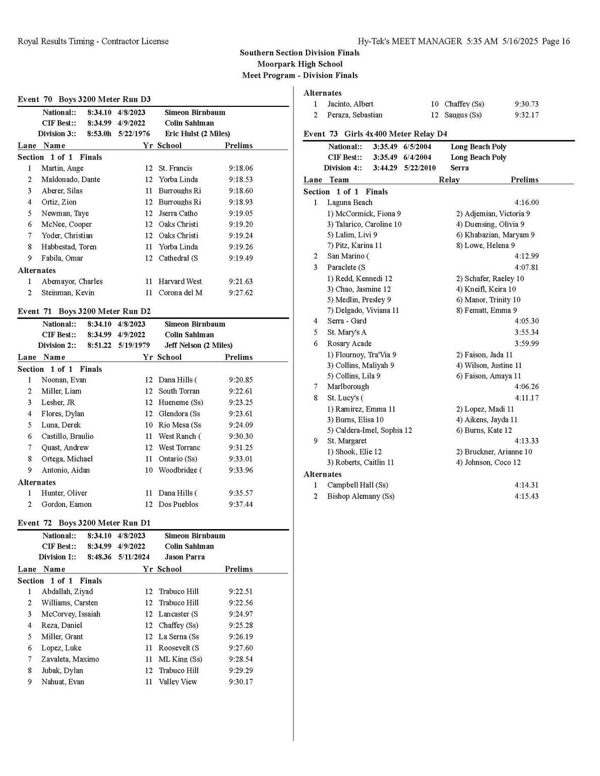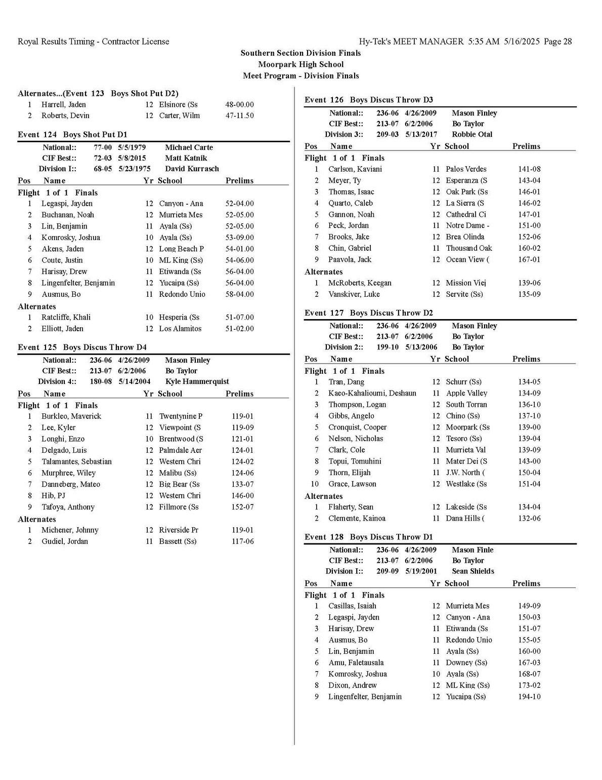 The quality of competition in the Southern Section is unmatched anywhere in the state or the country, for that matter so making it into the post season is quite an accomplishment that each of you should be very proud of.
