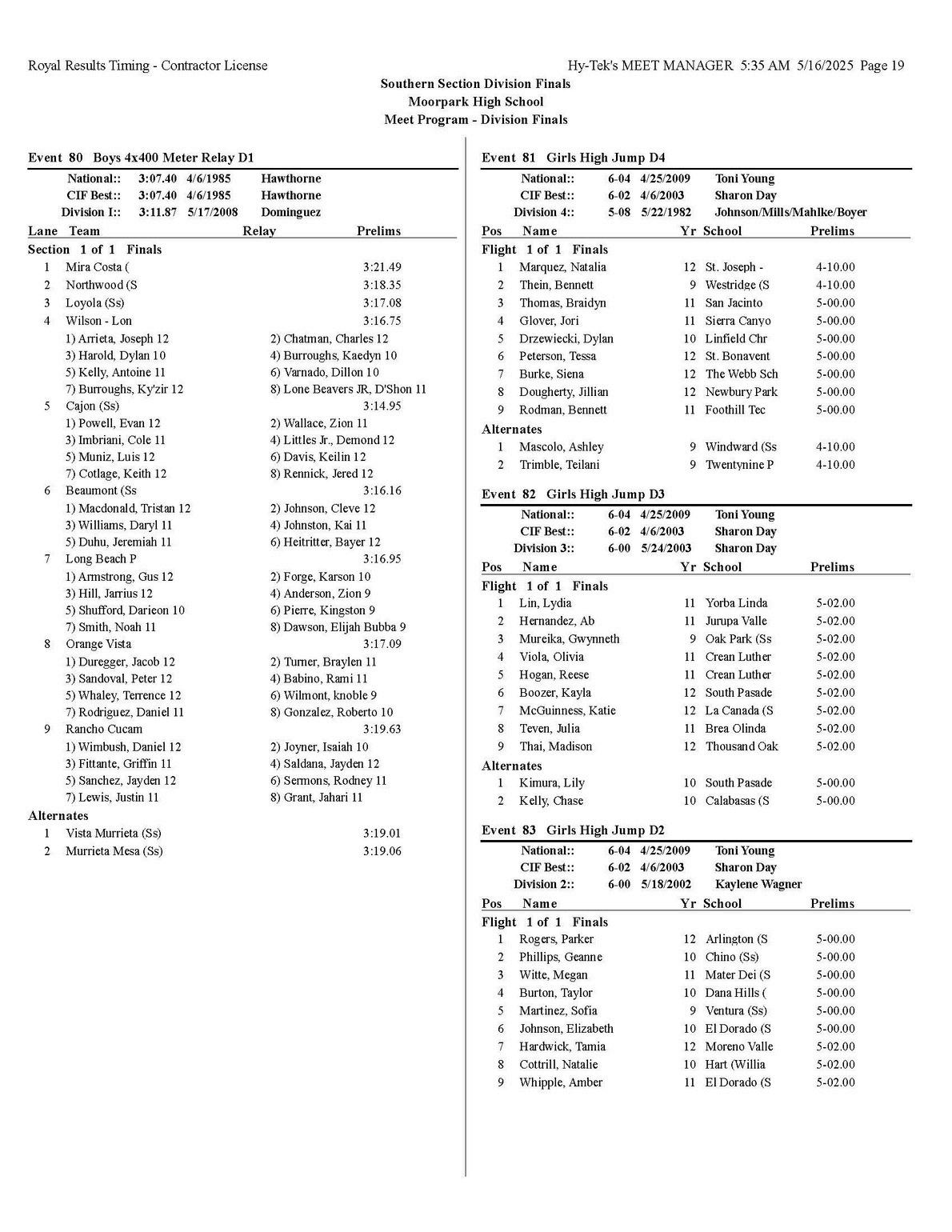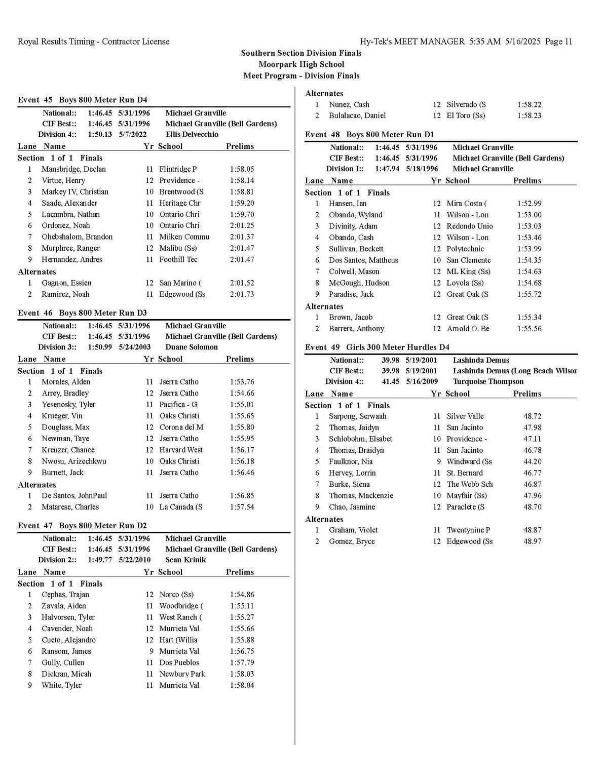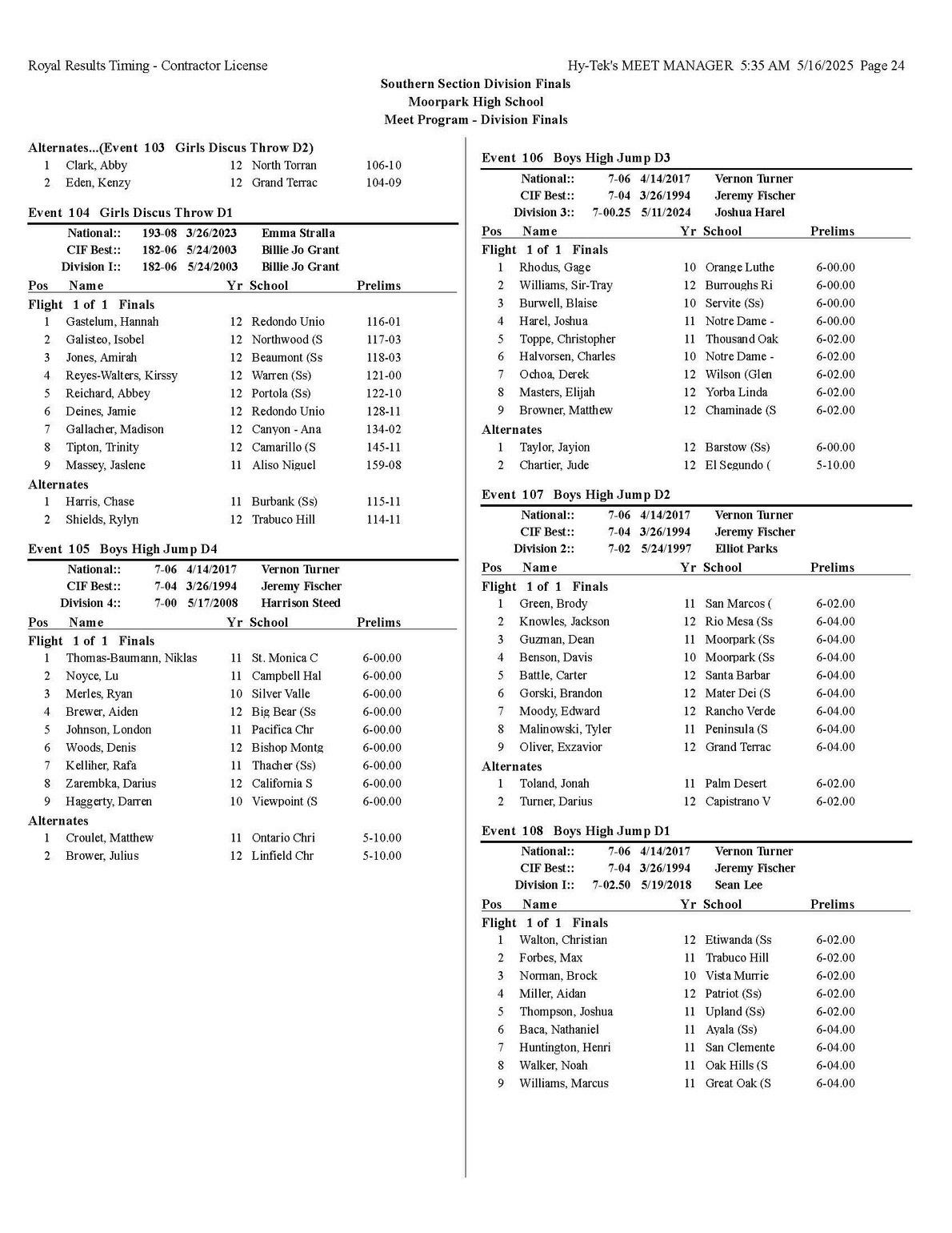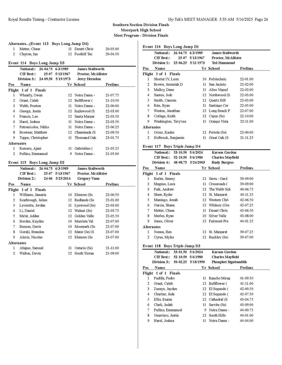 The quality of competition in the Southern Section is unmatched anywhere in the state or the country, for that matter so making it into the post season is quite an accomplishment that each of you should be very proud of.