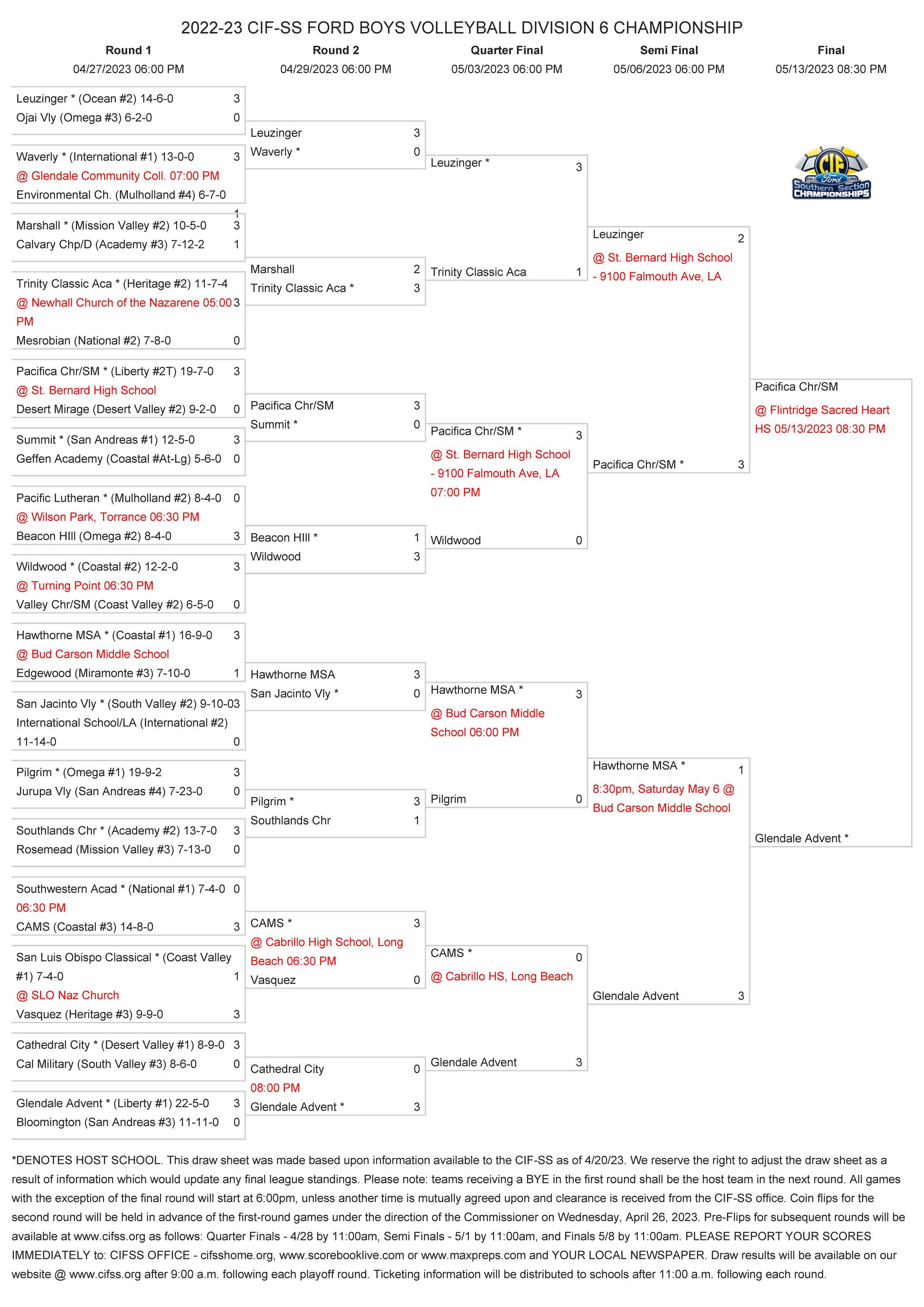 The CIF Southern Section is proud to host these Section wide playoffs based on the highest level of education based athletics. We hope that our events are met with respect, integrity and dignity for every student athlete, coach, fan base and especially our game officials. This will help produce the highest level of interscholastic athletic experience for all involved.