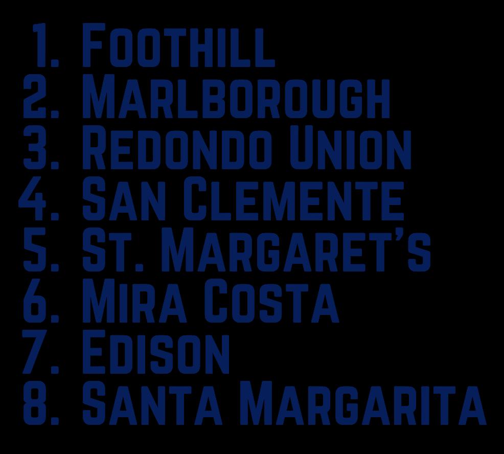 MArlborough MArlborough 1 2 4 5 6 7 8 9 10 11 12 14 19 21 22 23 24 25 26 27 28 29 33 44 50 99 Hadley Mills Brynn Perkins Ali Shimabuku Mia Marchetti Alexa Lemerise Addison Duvel Elle Vickers Addison Moon Sophia Ortiz Anneka Edlund Adeline Healy Tatum Walshe Kylie McMahon Lizzy Weaver Leni Marchetti Zoey Stephens Nellania Banuelos Maya Weaver Payton Thatcher Kayla Agarie Sophia Katnik Serenity Sterling Mikayla Yang Sydney Wren Courtney Copeland Jenna Cardeno 9 10 12 12 12 10 10 10 11 11 12 12 12 10 9 12 10 12 11 9 10 9 12 12 12 11 Pos D M D M A M M M A M A M D D D M D A D M D M G A M G FOOTHILL FOOTHILL MUSTANGS MUSTANGS Principal: Athletic Directors: Head Coach: Assistant Coaches: League: No. 2 3 5 7 8 9 10 11 12 13 14 15 16 17 19 20 21 22 23 24 25 26 28 31 40 45 49 50 Name Sophia Lu Leah Fischer Hazel Reitzell Valeria Guzman Sophia Cuteño Jacqueline Lane Natalie Cadow Jiah Uhm Abigail Merges Julia Guidry Margalit Salkin Sabrina Guidry Marlee Appel Ruby Fox Isabella Ohr Sabine Weil Lucy Savant Juliana Orman Ava Fossati Sofia Klein Ella Kim Eloise Shin Samantha Norman Cassidy Seitz Christina Orman Dylan Sandler Aubrey Geibelson Brooke Hinkle Yr. 9 9 11 11 9 9 11 9 9 10 10 10 9 9 10 12 12 11 9 11 11 10 12 12 11 12 9 11 Pos. A D D D M D A D A M D M A D M D A A M D A M D D D D G G Principal: Athletic Director: Head Coach: Assistant Coaches: League: Jennifer Ciccarelli Sheila Pauley Meghan Toomey Hannah Upshaw & Jackie Young Mission DIVISION 1 KNIGHTS KNIGHTS Michelle England Vince Namba & Dan Shell Cristina Rodriguez Mo Gainz, Natalie Novick, Vanessa Topete Crestview