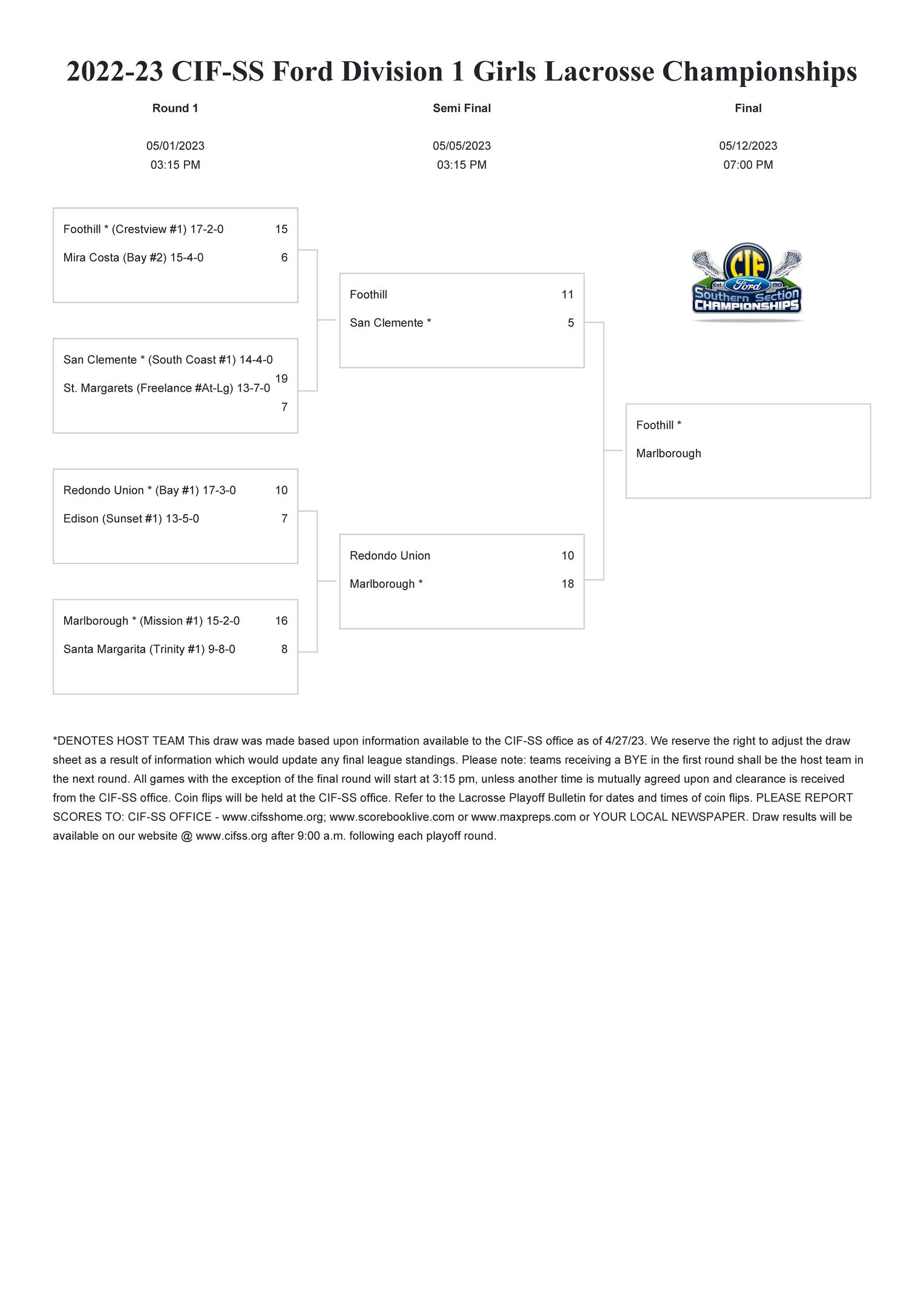 The CIF Southern Section is proud to host these Section wide playoffs based on the highest level of education based athletics. We hope that our events are met with respect, integrity and dignity for every student athlete, coach, fan base and especially our game officials. This will help produce the highest level of interscholastic athletic experience for all involved.