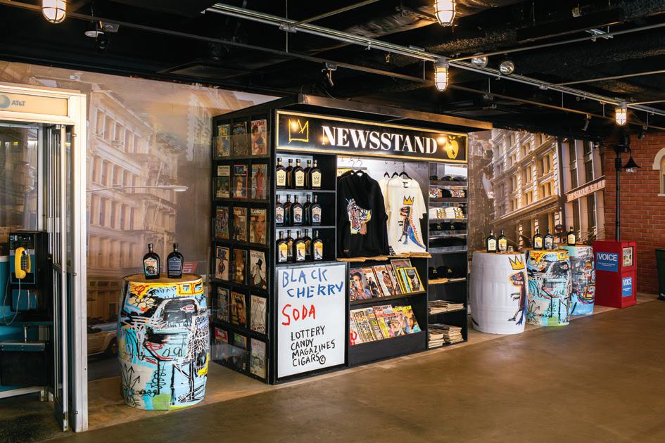 The distillery experience includes "Basquiat's New York," a tasting room that surrounds guests with oversized Basquiat imagery and memorabilia from 1980s New York. This multi-sensory experience features a VIP tour with a tasting of the Distillery Exclusive cask-finished whiskey. The project also includes a curated collection of merchandise, such as dino and crown t’s and sweatshirts, designed and produced by New York brand Rome Pays Off.
