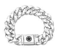 A take on iconic Cuban link jewelry, this audacious accessory is tradition with a twist. Chunky enough to get noticed without being overbearing, the bracelet boasts an imposing 18mm x 18mm link width and weighs in at 148.5 grams. Its adjustable length of 8 to 9.5 inches ensures a perfect fit, while the exclusive dual-lock clasp guarantees it stays locked in place. ($1,250)