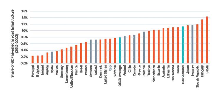 2: New Zealand’s current road investment as a share of GDP, relative to other OECD countries