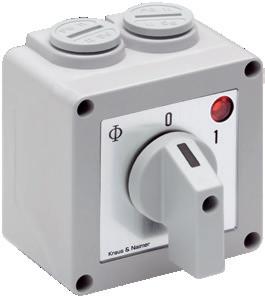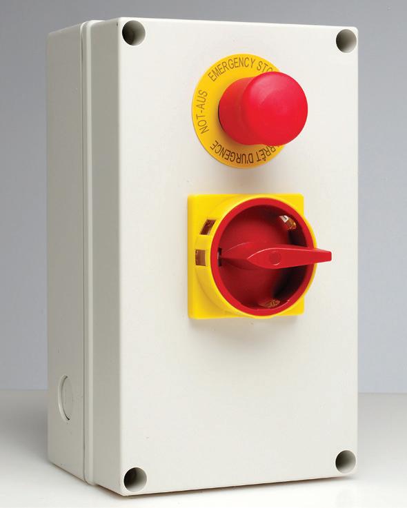 • 2 Drucktaster bis 1 A mit roter bzw. grüner Ringbeleuchtung, Not-Halt (2 Öffner)