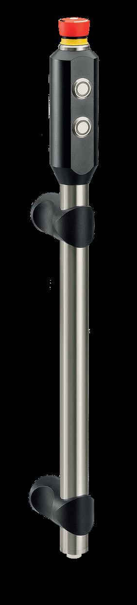 Funktions-Maschinengriff mit ringbeleuchteten Drucktastern und verschiebbaren Griffschenkeln | Functional machine handle with ring illuminated push buttons and adjustable handle shanks
