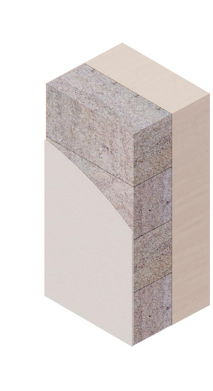Et 9 ugers intenst forsknings- og innovationsforløb Som en del af de studerendes femte år på kandidatprogrammet Bosætning, Økologi & Tektonik, har vi udviklet et særligt undervisningsformat kaldet ”Forskningsog Innovationsforløbet”. Her er det ambitionen at knytte praksis, undervisning og forskning sammen på nye måder. Formålet er at udvikle innovative løsninger, som har afsæt i aktuelle problemstillinger indenfor byggeriet. I forløbet arbejder de studerende tæt sammen med forskellige fagpersoner fra byggeriet og udvikler konkrete designstrategier gennem tektoniske 1:1 eksperimenter med materialer og forslag til nye arkitektoniske løsninger.