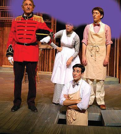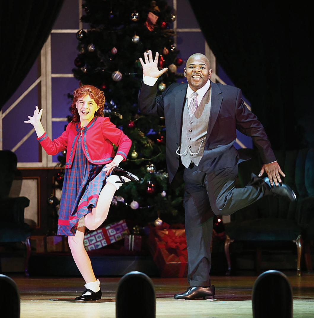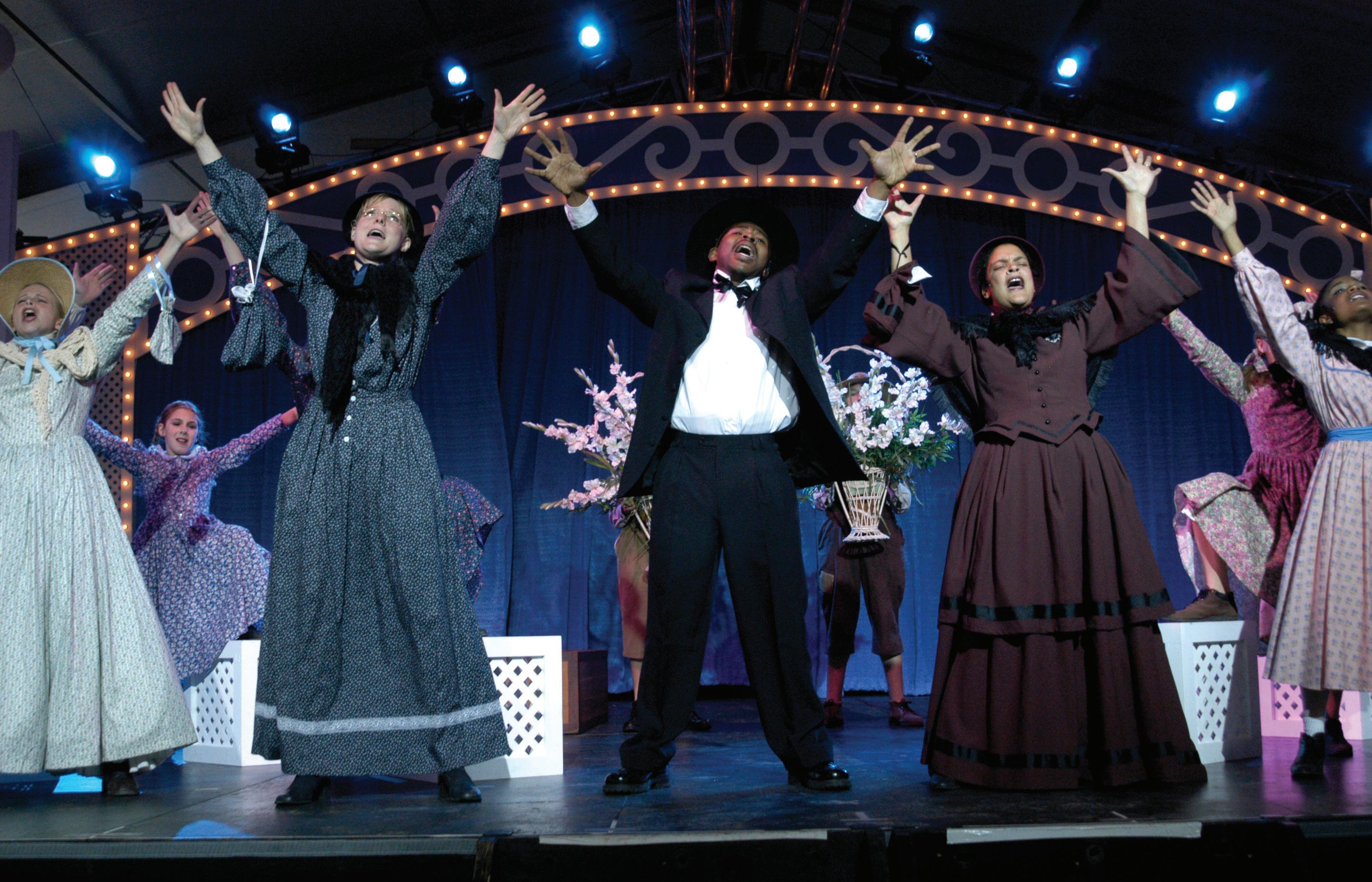 (Above left) Deondra Kamau Means as Daddy Warbucks in TCT’s Annie JR. (2012). (Left) From TCT’s production of Tom Sawyer: A River Adventure, part of the 2006 Tall Stacks Festival. (Right) As Sebastian in TCT’s Disney’s The Little Mermaid JR. (2015)
