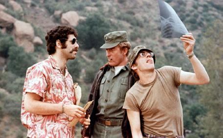 Donald Sutherland y Elliott Gould en el rodaje de M.A.S.H. ∙ 1970