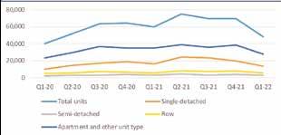 4. Housing Starts Trend - Q1 2020 to Q1 2022 (Residential Construction): Statistics Canada. Table 34-10-0135-01 Canada Mortgage and Housing Corporation, housing starts, under construction and completions, all areas, quarterly