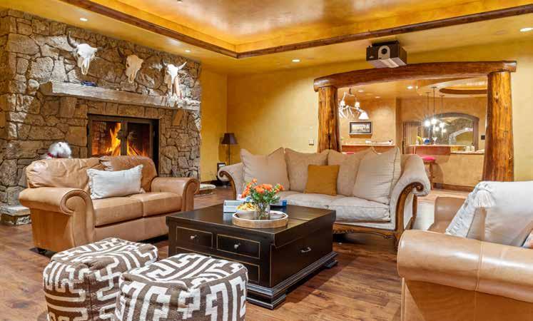 A defining element of the Reserve’s design is the indoor pool and spa, which seamlessly blends wellness and architecture. Surrounded by elegant marble finishes and accordion-style glass doors that open directly onto the adjoining patio, the pool area invites effortless indoor/outdoor living. From here, you can swim or soak while looking out across the pond and the full sweep of the Tetons. Perfectly suited for yearround comfort and immersion in nature, this space functions as both a retreat and a visual centerpiece—just steps from the great room.