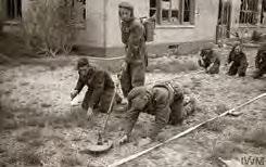 Historical photos of demining being conducted after World War II. Courtesy of IWM, Imperial War Museums and the War Department, US Government.”. A deminer walks on an area fully excavated by means of raking and mechanical excavation. Courtesy of Roly Evans. (See article page 58).