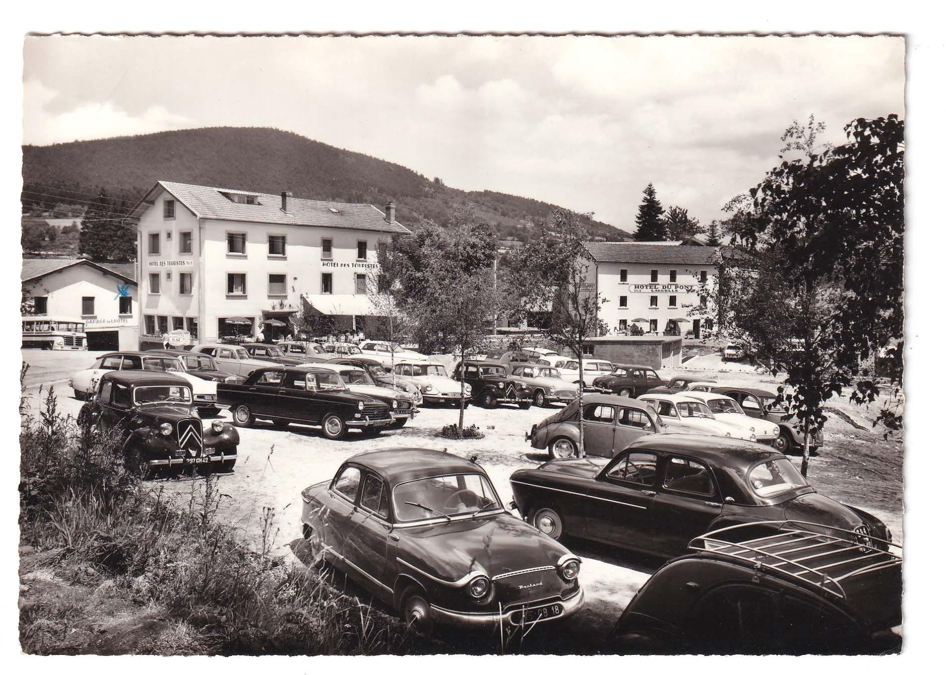Magnifique carte ensoleillée avec une Simca Aronde Châtelaine, camping car avant la lettre, Triumph 2000, Renault Dauphine et 4 Super, Citroën Ami6, Peugeot 203, 204 et 404, Fiat 1300/1500.