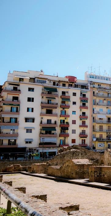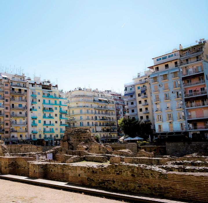 own excellent bars and eateries. Where Mackenzie King and Iktinou Street meet, you’ll come across the unique church-catacomb of St. John the Baptist. Descend the steps to find yourself in a cool, green oasis. Formerly a Roman bath and an early Christian baptistery, St. John the Baptist’s well-preserved catacombs are one of the most fascinating pieces of the underground history of Thessaloniki, and remain a working church.