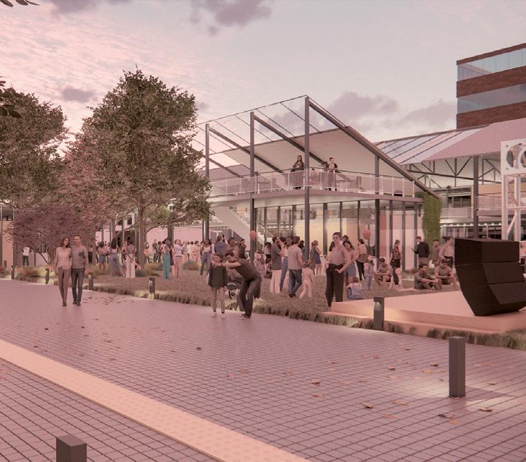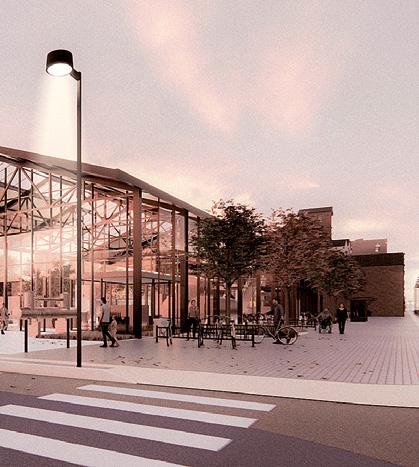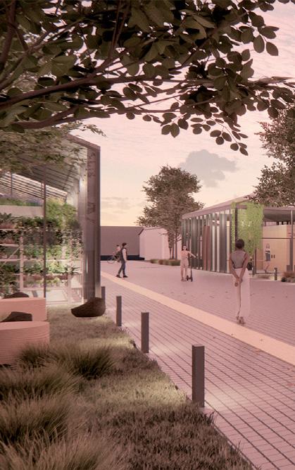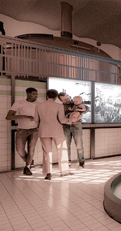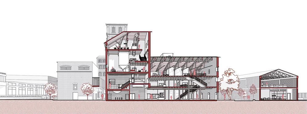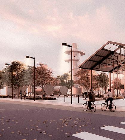 εμπειριών, οι οποίες συντελούν στη δημιουργία ενός συγκροτήματος αφιερωμένου στον ζύθο. Όσον αφορά στη διαφύλαξη και τη συνέχεια της ιστορικής μνήμης, αυτή επιτυγχάνεται μέσω της ερμηνείας της πρώην χρήσης (δηλαδή, της δημιουργίας ενός αυτοαναφορικού μουσείου), καθώς και της επανάληψης, διατήρησης και μεθερμηνείας της προηγούμενης χρήσης – μέσω, δηλαδή, της συνέχειας της άυλης κληρονομιάς, με τη δημιουργία μικροζυθοποιίας. Για την ενεργοποίηση του χώρου και τη δημιουργία του τοπόσημου ένα μεγάλο μέρος του συγκροτήματος αποδίδεται στο κοινό με τη δημιουργία ενός δημόσιου, υπαίθριου χώρου εξωτερικής διαμόρ- 16-17 1. Γενικές αξονομετρικές απόψεις της πρότασης στο συγκρότημα. Επάνω, η νοτιοδυτική άποψη. Κάτω, η βορειοανατολική. 2. Προοπτικές τομές της πρότασης στα διατηρητέα κτήρια του συγκροτήματος. Επάνω, το Μουσείο Ζυθοποιίας και τα γραφεία διοίκησης. Κάτω, η μικροζυθοποιία και το δοκιμαστήριο-taproom. 3. Φωτορεαλιστική άποψη από το εσωτερικό της αυτοαναφορικής έκθεσης, στον χώρο της παλαιάς βρασσαρίας. 4. Φωτορεαλιστική άποψη των ελαφρών κατασκευών στον ανοιχτό χώρο που προσφέρεται για φεστιβάλ ζύθου. 5. Φωτορεαλιστική άποψη της νέας κατασκευής στην είσοδο του οικοπέδου από την πόλη. x Citymag