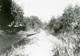 The Old Mill Ditch, viewed here between Clear Creek and 10th Street, supplied power for the Golden Flour Mill.