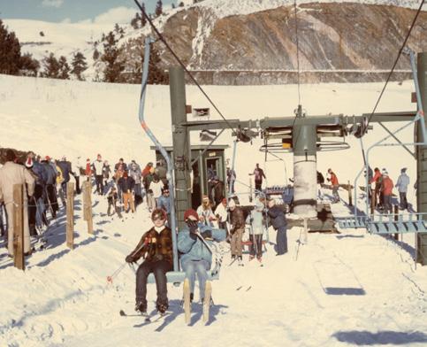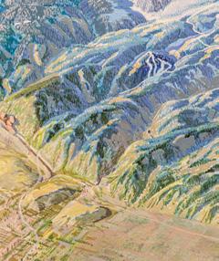 Detail from Hal Shelton’s painting Colorado Ski Country USA. On loan from the Colorado Snowsports Museum Hall of Fame.