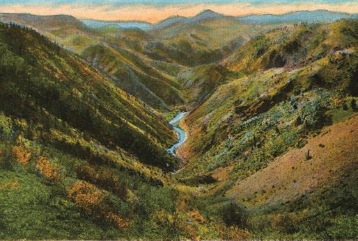 Clear Creek Canyon…The grandest scenery in the mountains, as it twists and turns marvellously (sic), and its stupendous sides are nearly perpendicular, while farther progress is to all appearance continually blocked by great masses of rock and piles of snow-covered mountains.