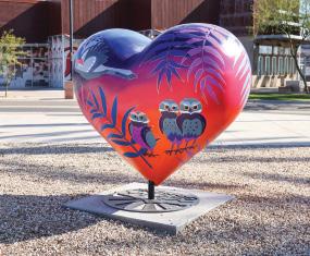 Where else can you discover pieces of artwork that showcase all the beautiful things about a city? You can even turn this one into a scavenger hunt! There are 10 fiberglass hearts placed across the city that are hand painted by artists. The designs on each heart or heART are unique but they all represent the theme Goodyear the Beautiful.