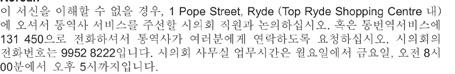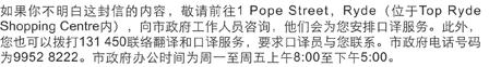 Customer Service Centre 1 Pope Street, Ryde NSW 2112 (+61 2) 9952 8222 www.ryde.nsw.gov.au